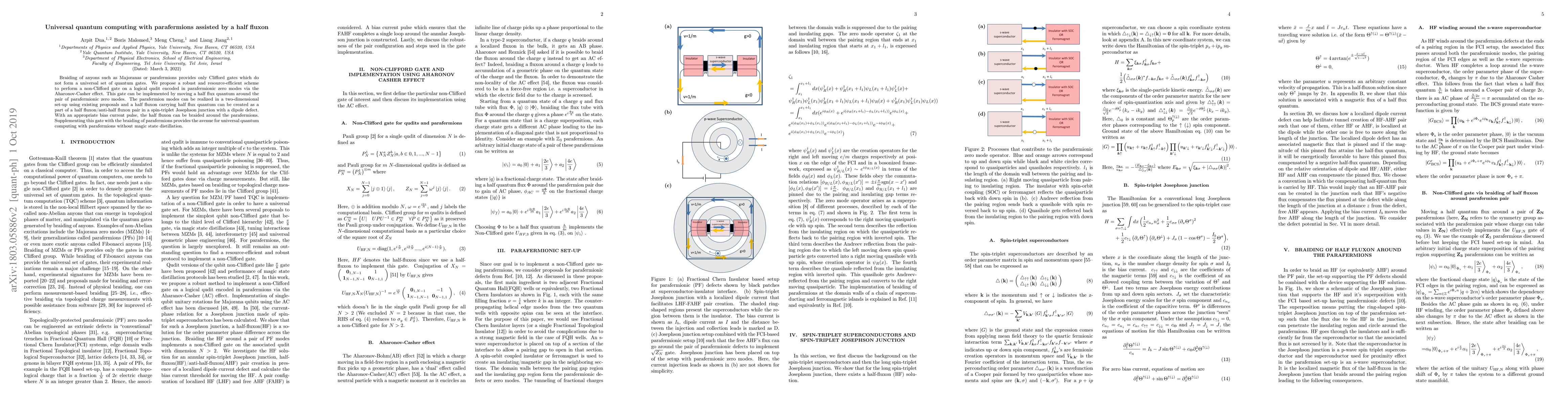 This paper proposes a method to achieve universal quantum computing using parafermions by implementing a non-Clifford gate via the Aharonov-Casher effect, facilitated by braiding a half fluxon around parafermionic zero modes, thus eliminating the need for magic state distillation.