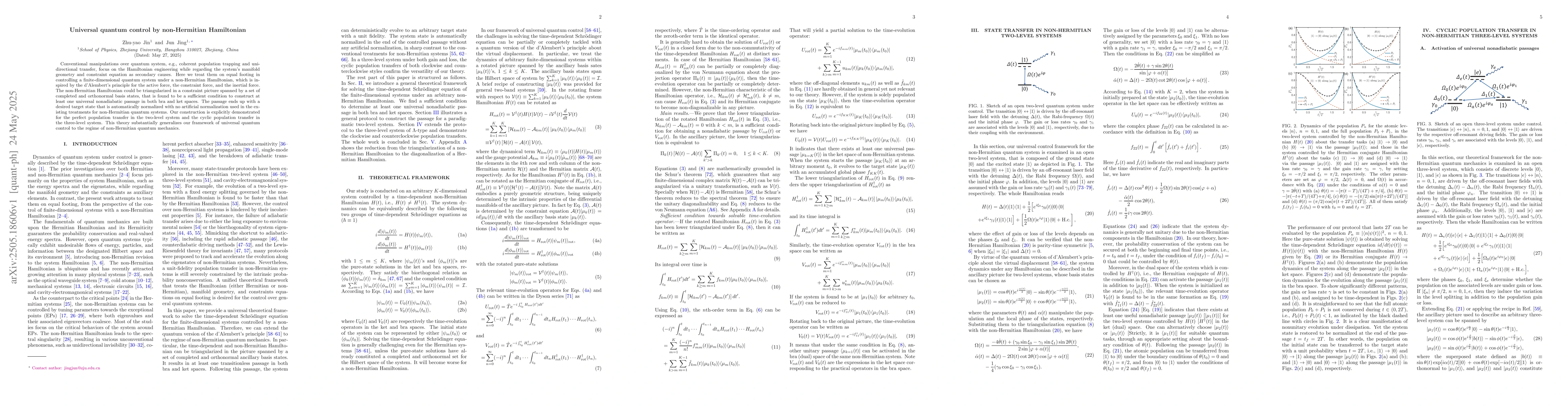 This work substantially extends the framework of universal quantum control to the non-Hermitian quantum mechanics regime, offering a novel method for quantum state manipulation.