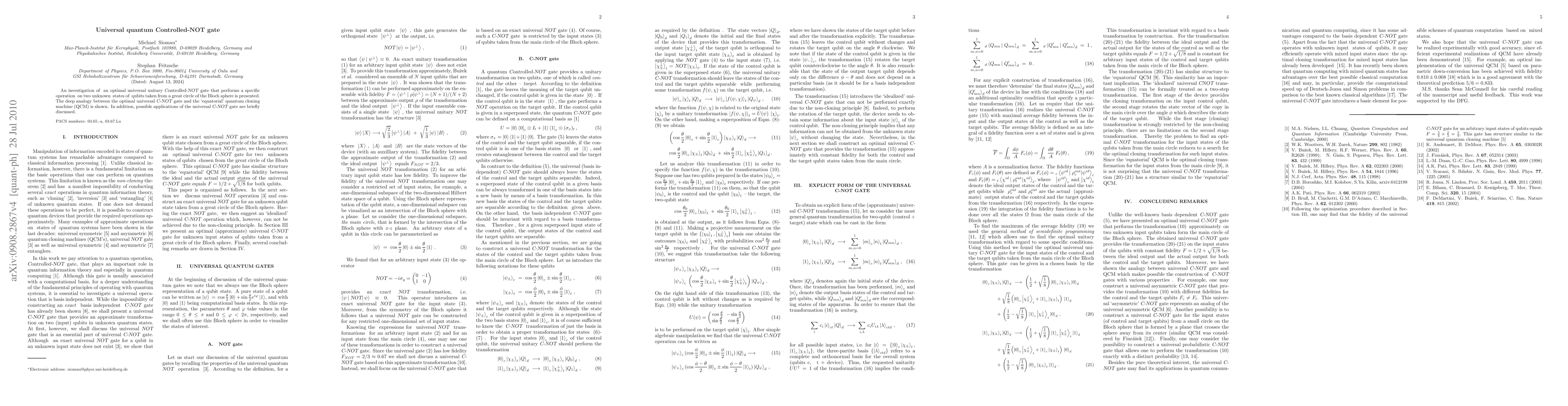 An investigation of an optimal universal unitary Controlled-NOT gate that performs a specific operation on two unknown states of qubits taken from a great circle of the Bloch sphere is presented. The deep analogy between the optimal universal C-NOT gate and the `equatorial' quantum cloning machine (QCM) is shown. In addition, possible applications of the universal C-NOT gate are briefly discussed.