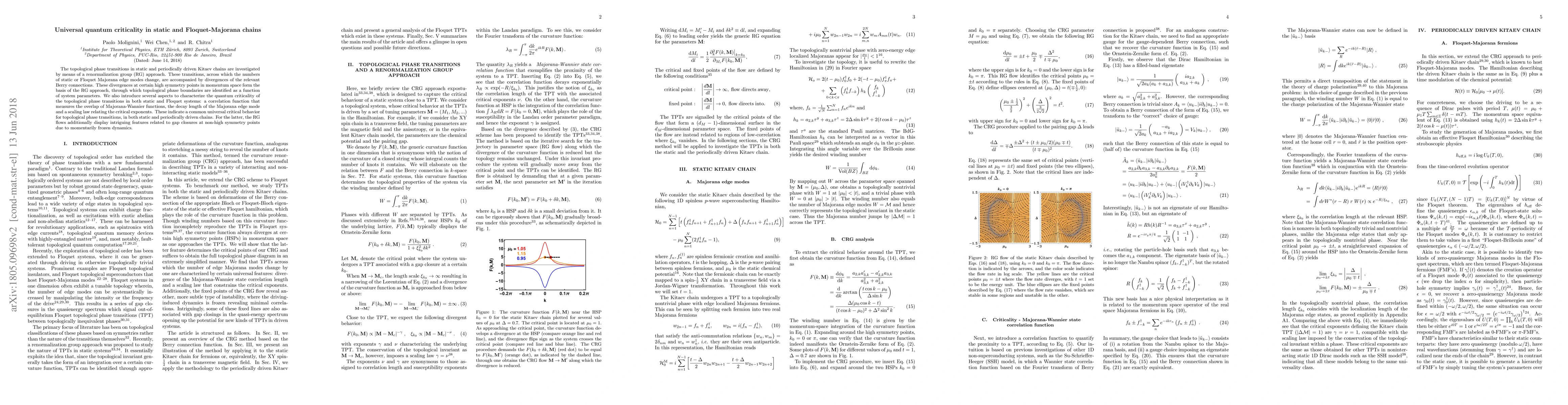 This paper investigates topological phase transitions in static and periodically driven Kitaev chains using renormalization group methods, identifying universal quantum critical behavior characterized by divergences in Berry connections and various critical measures. Both static and driven systems exhibit common critical features, with driven systems additionally showing unique dynamics at non-high symmetry points.