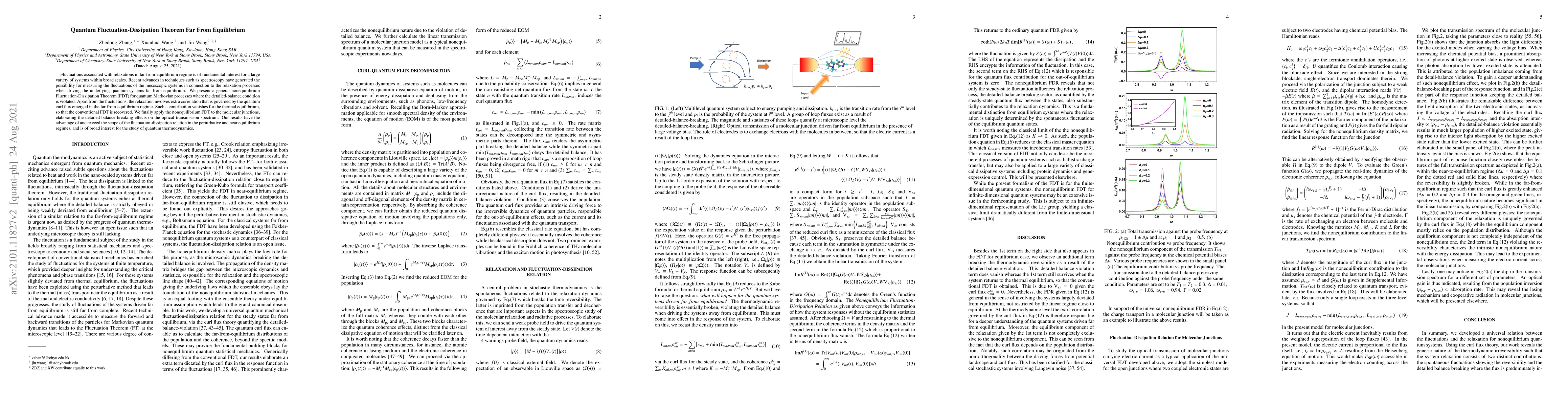 This paper presents a universal nonequilibrium Fluctuation-Dissipation Theorem for quantum systems far from equilibrium, highlighting the quantum curl flux's role in relaxation processes and its impact on optical transmission in molecular junctions, extending beyond conventional FDT applicability.