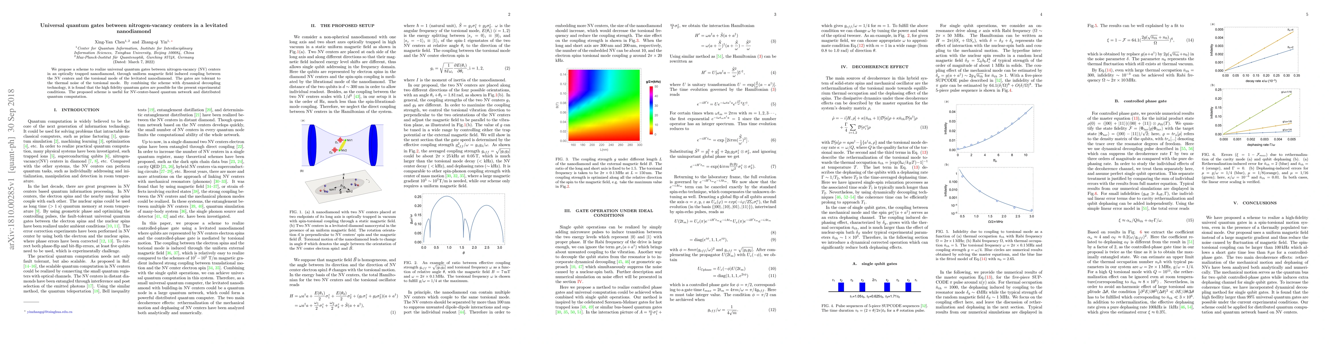 This paper proposes a method to achieve universal quantum gates between nitrogen-vacancy centers in a levitated nanodiamond using magnetic field-induced coupling with the nanodiamond's torsional mode. The scheme is robust against thermal noise and, when combined with dynamical decoupling, enables high-fidelity quantum operations for current experimental setups, potentially advancing NV-center-based quantum networks and distributed quantum computing.