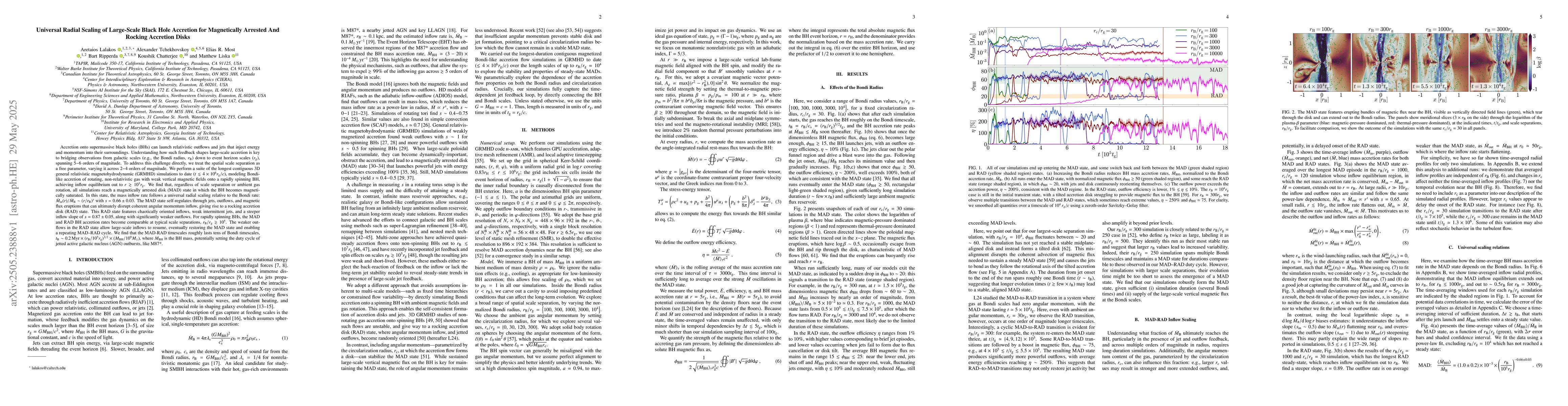 Researchers found a universal law governing how matter falls onto supermassive black holes, with two distinct states: magnetically arrested and rocking accretion disks, affecting jet energy and momentum.