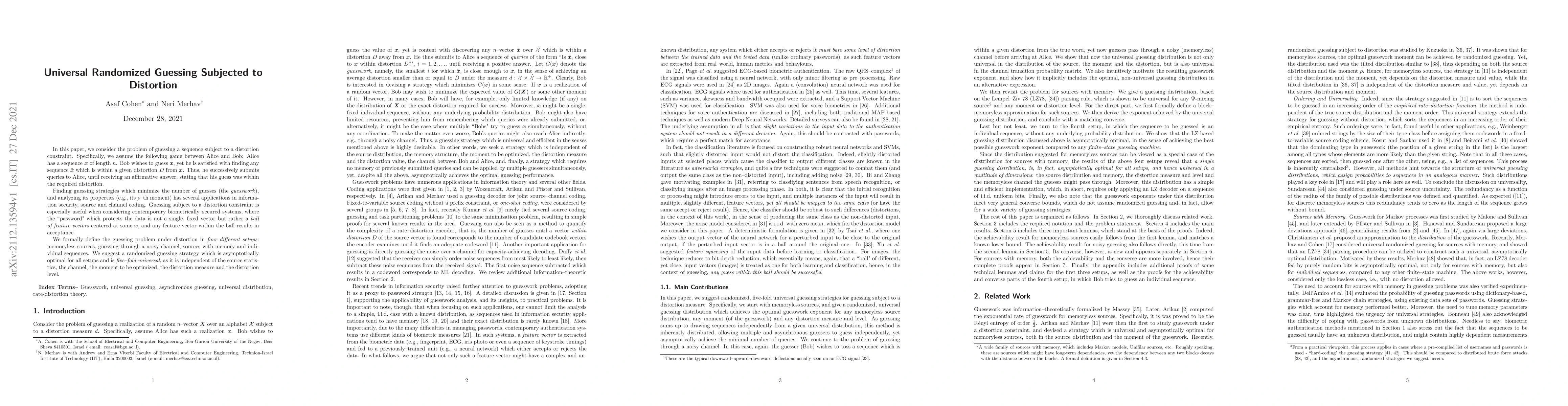 In this paper, we consider the problem of guessing a sequence subject to a distortion constraint. Specifically, we assume the following game between Alice and Bob: Alice has a sequence $\bx$ of length $n$. Bob wishes to guess $\bx$, yet he is satisfied with finding any sequence $\hat{\bx}$ which is within a given distortion $D$ from $\bx$. Thus, he successively submits queries to Alice, until receiving an affirmative answer, stating that his guess was within the required distortion. Finding guessing strategies which minimize the number of guesses (the \emph{guesswork}), and analyzing its properties (e.g., its $\rho$--th moment) has several applications in information security, source and channel coding. Guessing subject to a distortion constraint is especially useful when considering contemporary biometrically--secured systems, where the "password" which protects the data is not a single, fixed vector but rather a \emph{ball of feature vectors} centered at some $\bx$, and any feature vector within the ball results in acceptance. We formally define the guessing problem under distortion in \emph{four different setups}: memoryless sources, guessing through a noisy channel, sources with memory and individual sequences. We suggest a randomized guessing strategy which is asymptotically optimal for all setups and is \emph{five--fold universal}, as it is independent of the source statistics, the channel, the moment to be optimized, the distortion measure and the distortion level.