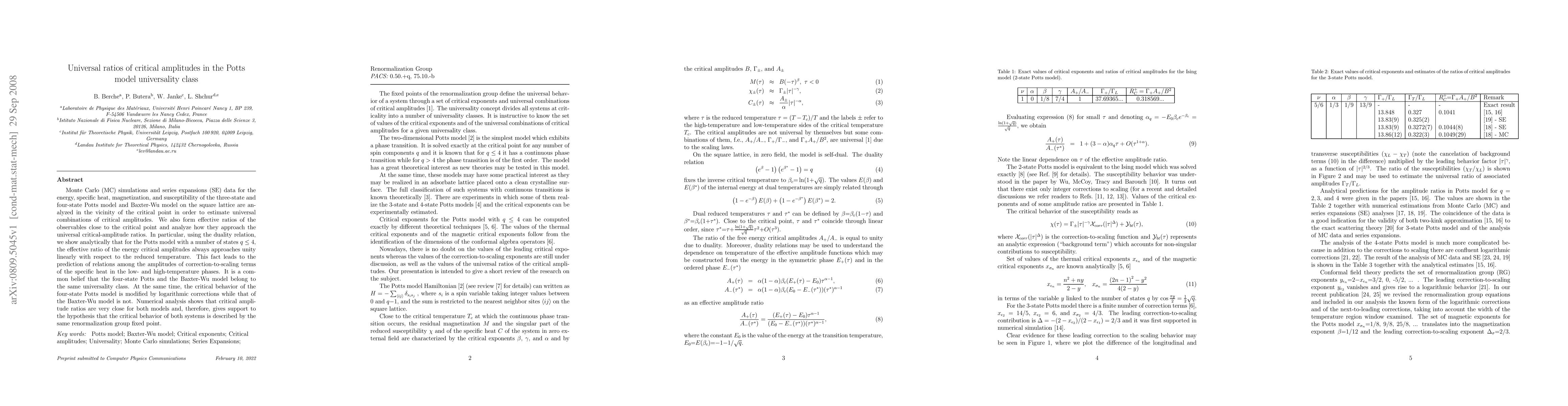 The research combines MC simulations, series expansions, and duality relations to analyze critical amplitude ratios in Potts models, providing new insights into their universality class and correction-to-scaling terms.