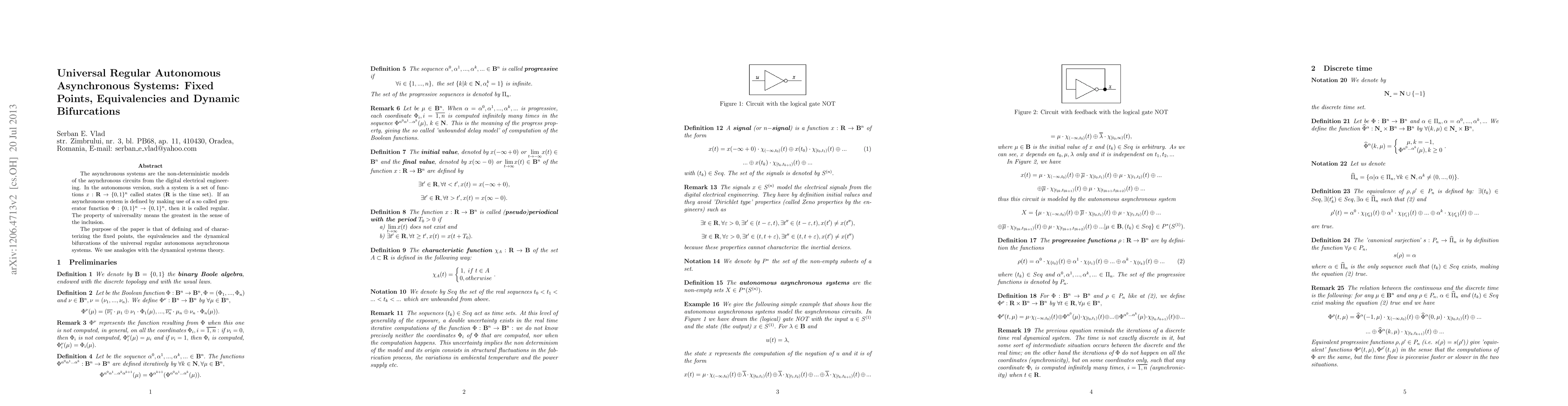 This paper explores universal regular autonomous asynchronous systems, defining and characterizing their fixed points, equivalencies, and dynamic bifurcations. It draws on analogies from dynamical systems theory to understand these properties in the context of non-deterministic asynchronous circuits.