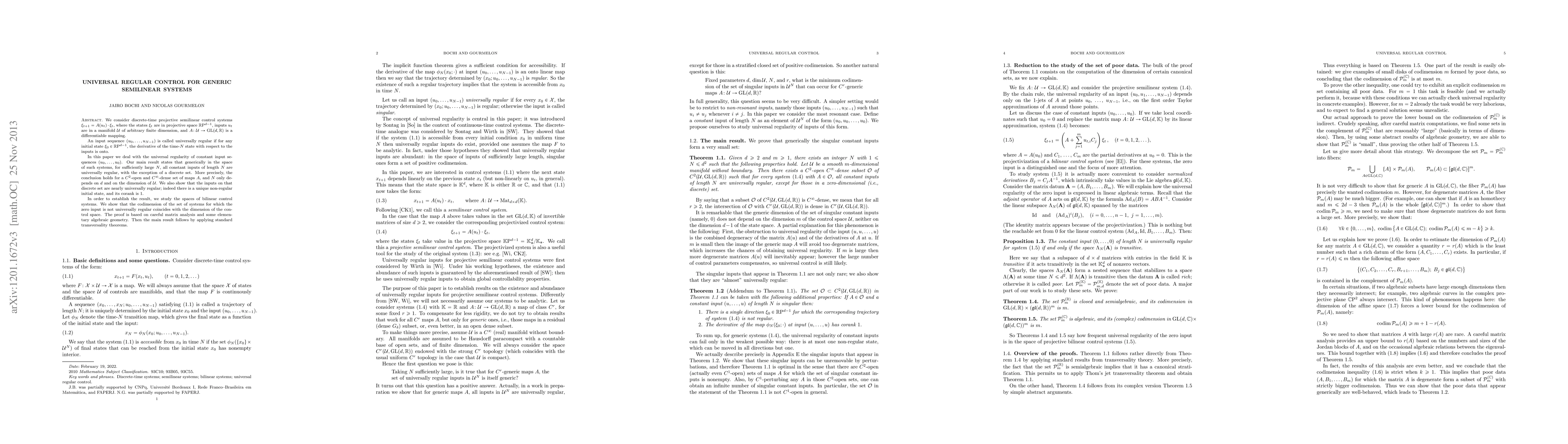 A research paper shows that for generic semilinear systems with constant inputs, most input sequences of sufficient length are universally regular, except for a small set where the initial state is non-regular.