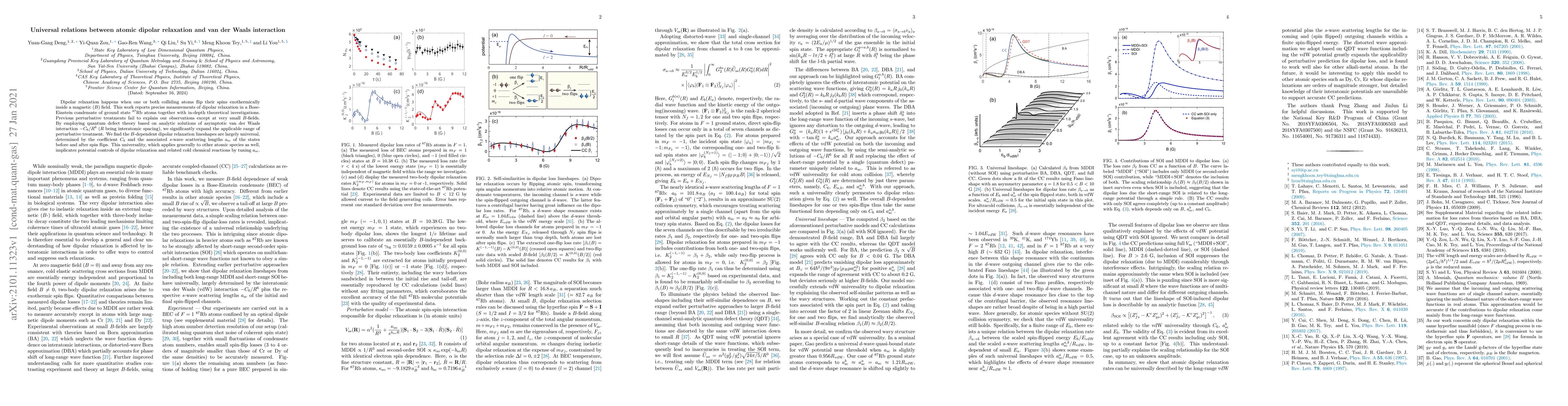 Dipolar relaxation happens when one or both colliding atoms flip their spins exothermically inside a magnetic ($B$) field. This work reports precise measurements of dipolar relaxation in a Bose-Einstein condensate of ground state $^{87}$Rb atoms together with in-depth theoretical investigations. Previous perturbative treatments fail to explain our observations except at very small $B$-fields. By employing quantum defect theory based on analytic solutions of asymptotic van der Waals interaction $-C_6/R^6$ ($R$ being interatomic spacing), we significantly expand the applicable range of perturbative treatment. We find the $B$-dependent dipolar relaxation lineshapes are largely universal, determined by the coefficient $C_6$ and the associated $s$-wave scattering lengths $a_{\rm sc}$ of the states before and after spin flips. This universality, which applies generally to other atomic species as well, implicates potential controls of dipolar relaxation and related cold chemical reactions by tuning $a_{\rm sc}$.