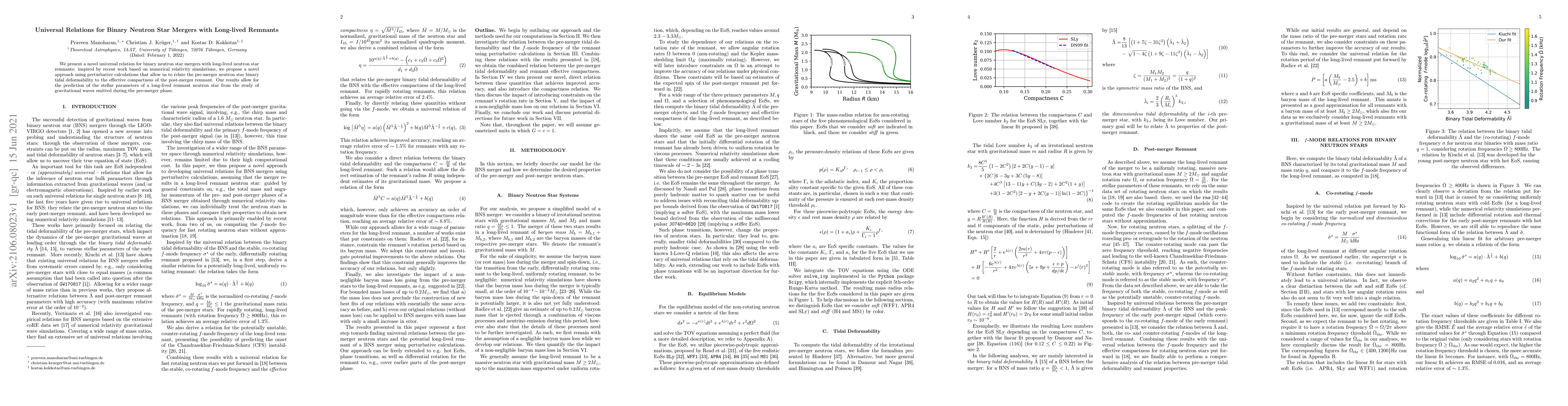 This paper proposes a universal relation for binary neutron star mergers resulting in long-lived remnants, using perturbative calculations to link pre-merger tidal deformability to post-merger remnant compactness. This relation enables predictions of remnant neutron star parameters from gravitational wave data.
