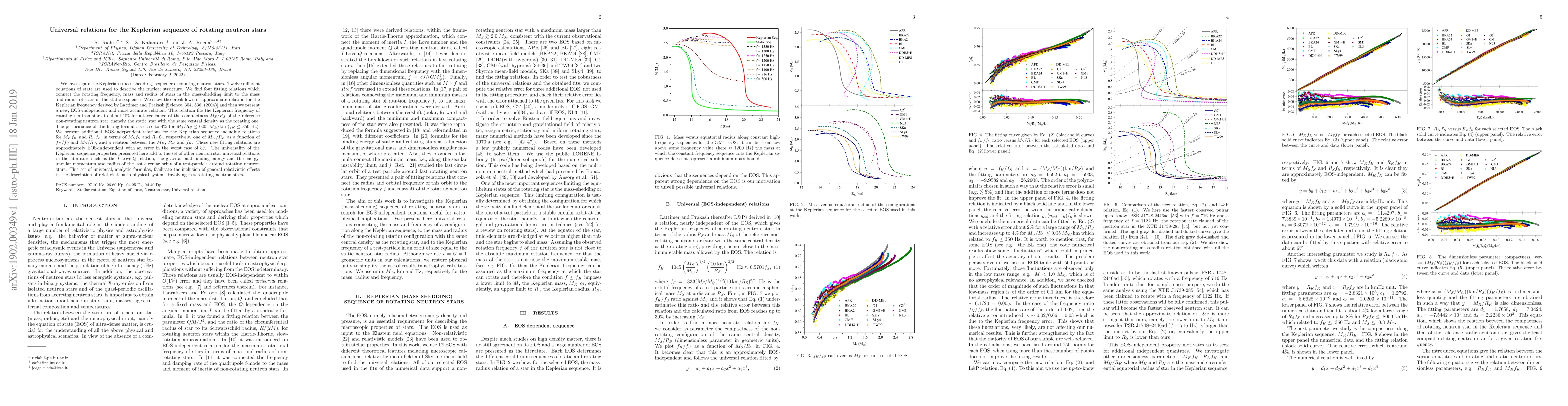 This paper develops new universal relations for the Keplerian sequence of rotating neutron stars, providing EOS-independent fitting formulas that connect the rotating frequency, mass, and radius to those of non-rotating stars. The new relations improve upon previous approximations, achieving an accuracy of about 2% for a wide range of compactness.