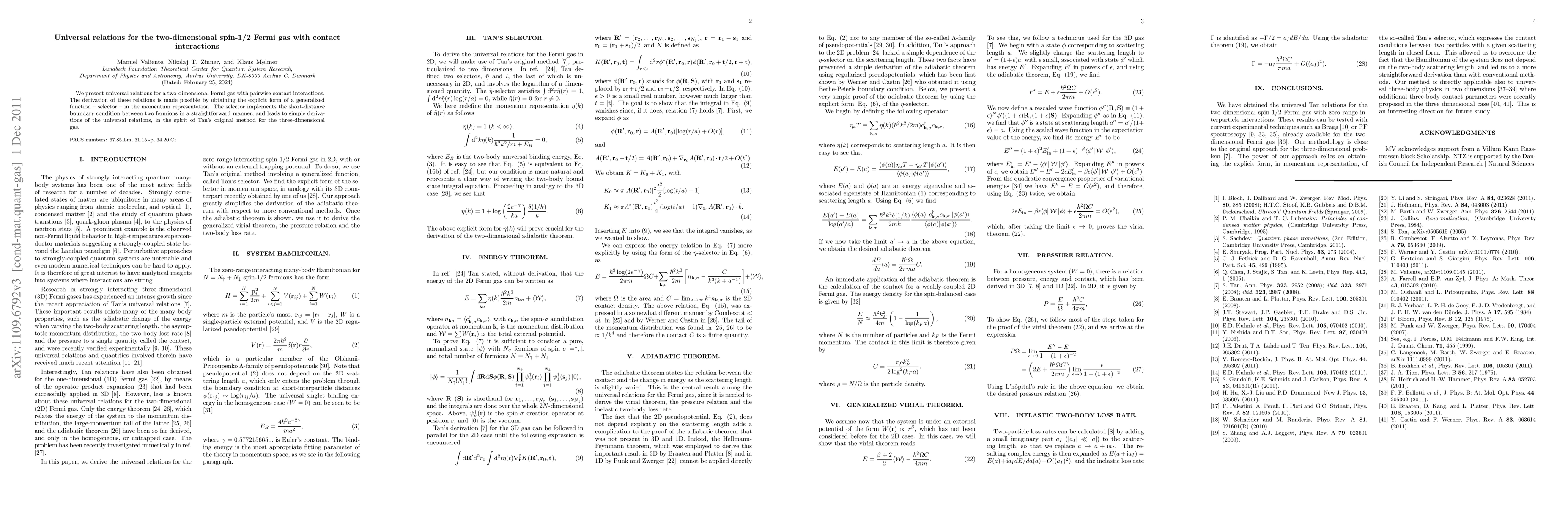 This research presents universal relations for a 2D Fermi gas with contact interactions, derived through a generalized function called the 'selector'. This selector simplifies the short-distance boundary condition between fermions, enabling straightforward derivations of universal relations, similar to Tan's method for 3D gases.