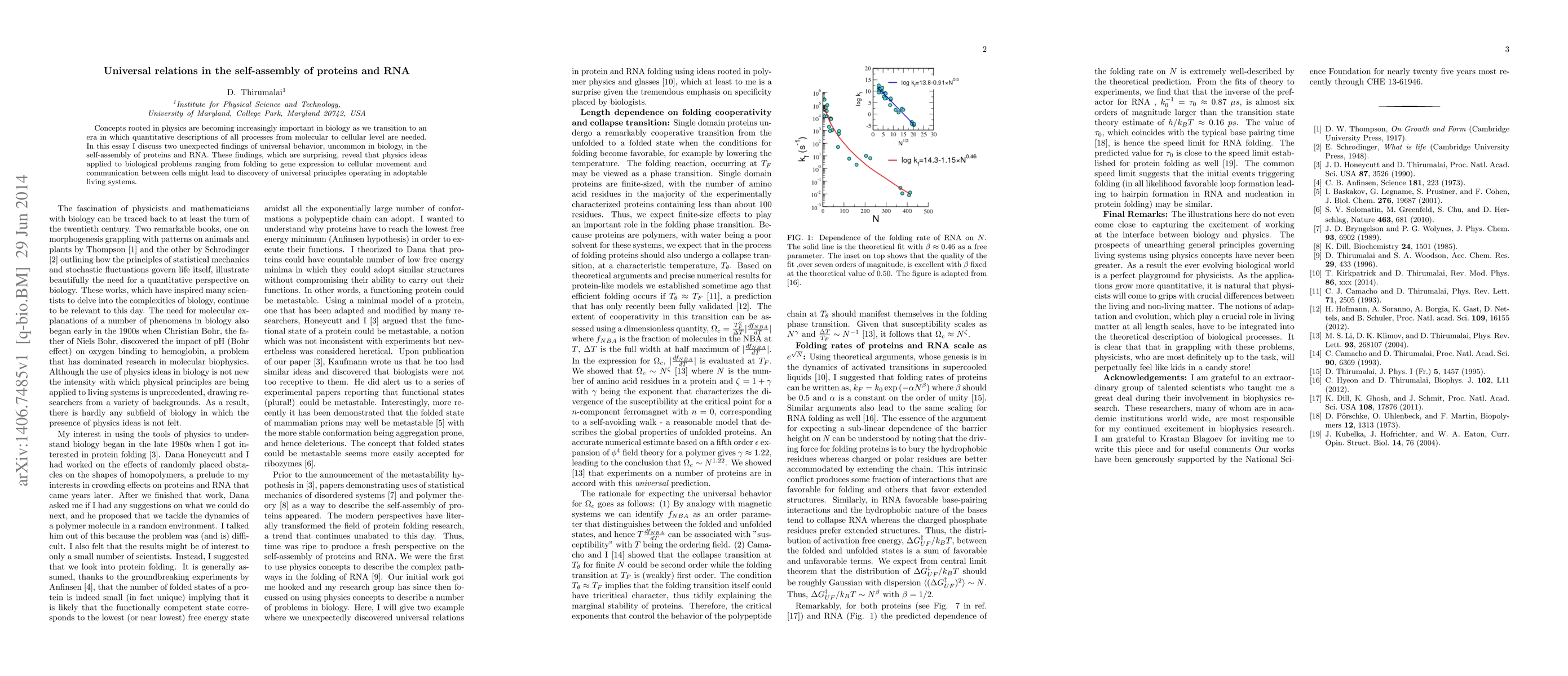 Concepts rooted in physics are becoming increasingly important in biology as we transition to an era in which quantitative descriptions of all processes from molecular to cellular level are needed. In this essay I discuss two unexpected findings of universal behavior, uncommon in biology, in the self-assembly of proteins and RNA. These findings, which are surprising, reveal that physics ideas applied to biological problems ranging from folding to gene expression to cellular movement and communication between cells might lead to discovery of universal principles operating in adoptable living systems.