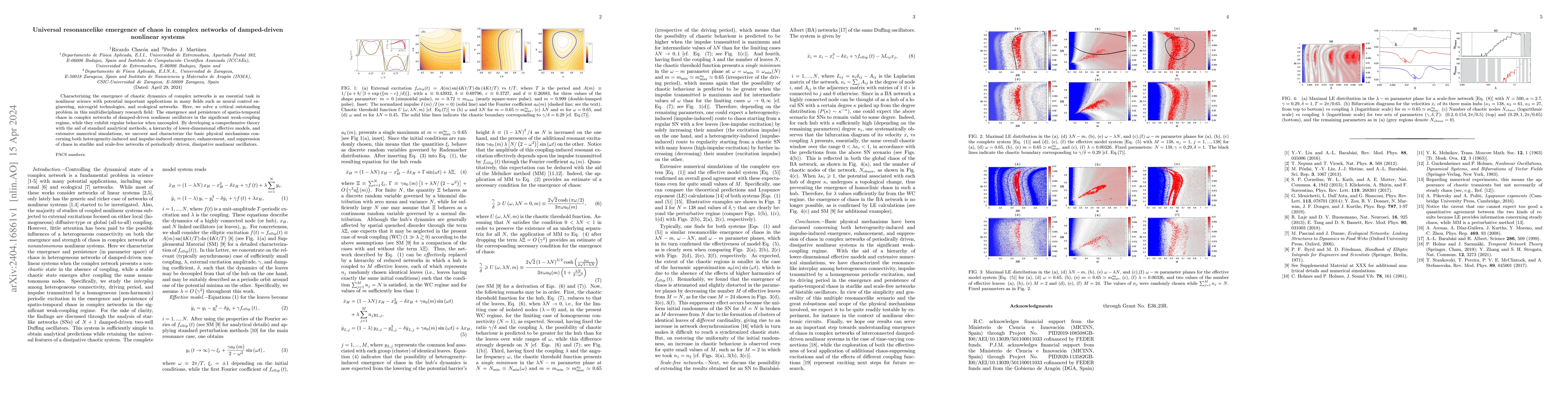 This research develops a comprehensive theory to explain the emergence and persistence of chaos in weakly coupled networks of damped-driven nonlinear systems, identifying both heterogeneity-induced and impulse-induced mechanisms for chaos in various network topologies through analytical methods and numerical simulations.