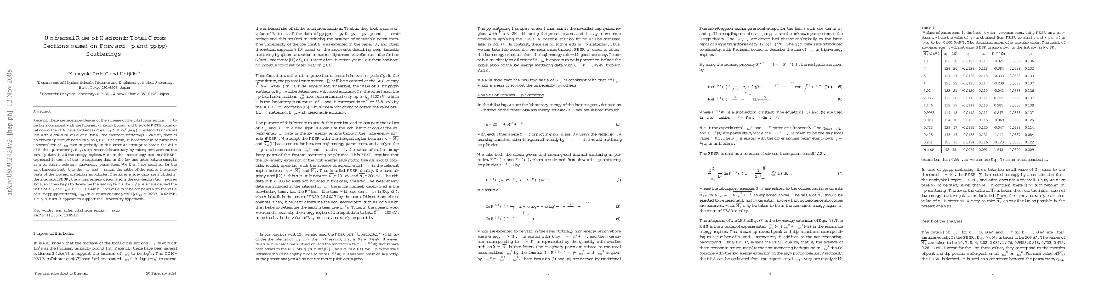 This paper investigates the universal rise of hadronic total cross sections, finding that the value of B for πp scattering, B(πp), is 0.311 ± 0.044 mb. This result supports the hypothesis of a common B value for all hadronic scatterings, as previously observed in p̄p and pp scatterings.