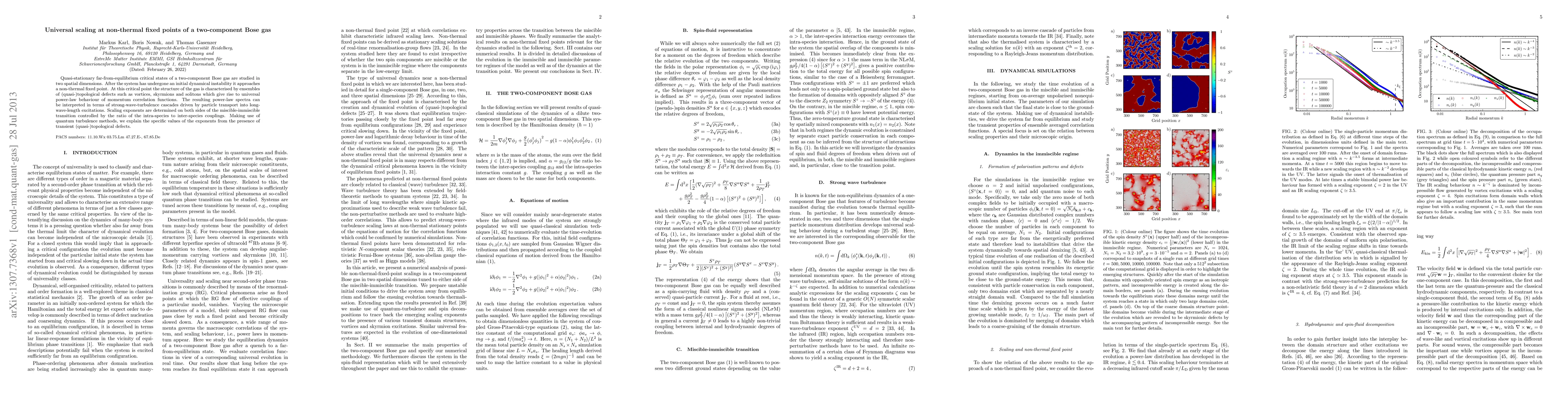 Researchers studied a two-component Bose gas that settles into non-thermal fixed points, producing universal power-law behavior in momentum correlation functions. They found this behavior is driven by strong-wave-turbulence cascades and relates to the ratio of intra-species to inter-species couplings.