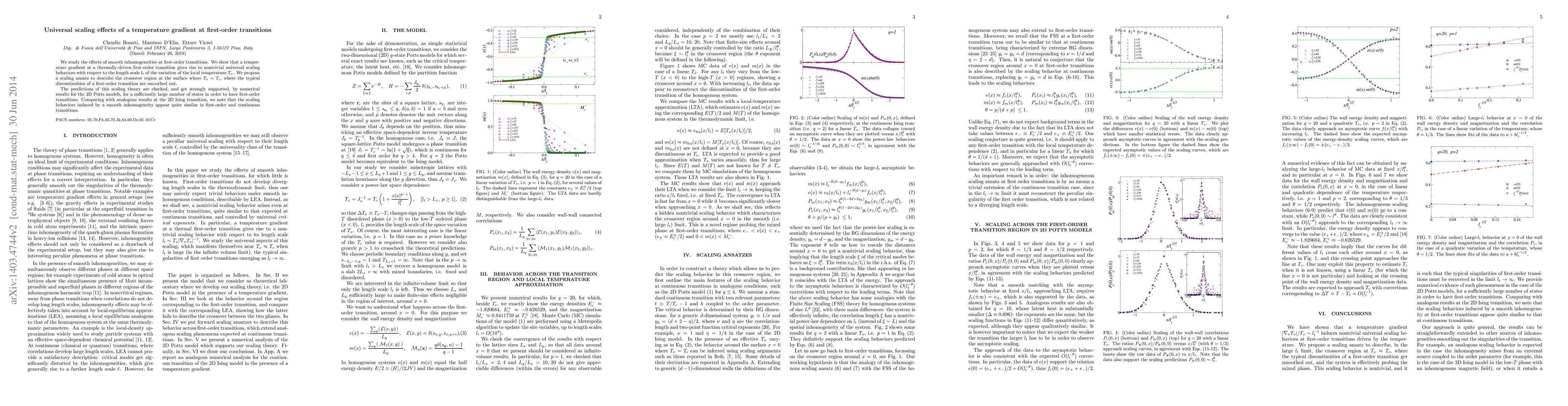 This paper explores the universal scaling effects of a temperature gradient on first-order phase transitions, proposing a scaling ansatz to describe the crossover region. Numerical results from 2D Potts models support the theory, showing similarities in scaling behaviors between first-order and continuous transitions.