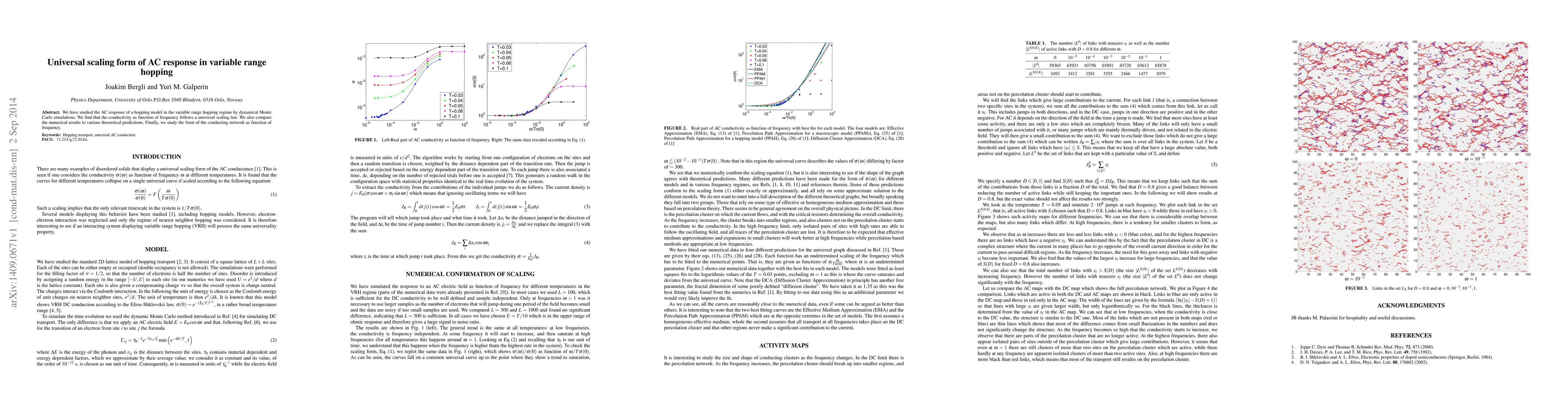 We have studied the AC response of a hopping model in the variable range hopping regime by dynamical Monte Carlo simulations. We find that the conductivity as function of frequency follows a universal scaling law. We also compare the numerical results to various theoretical predictions. Finally, we study the form of the conducting network as function of frequency.