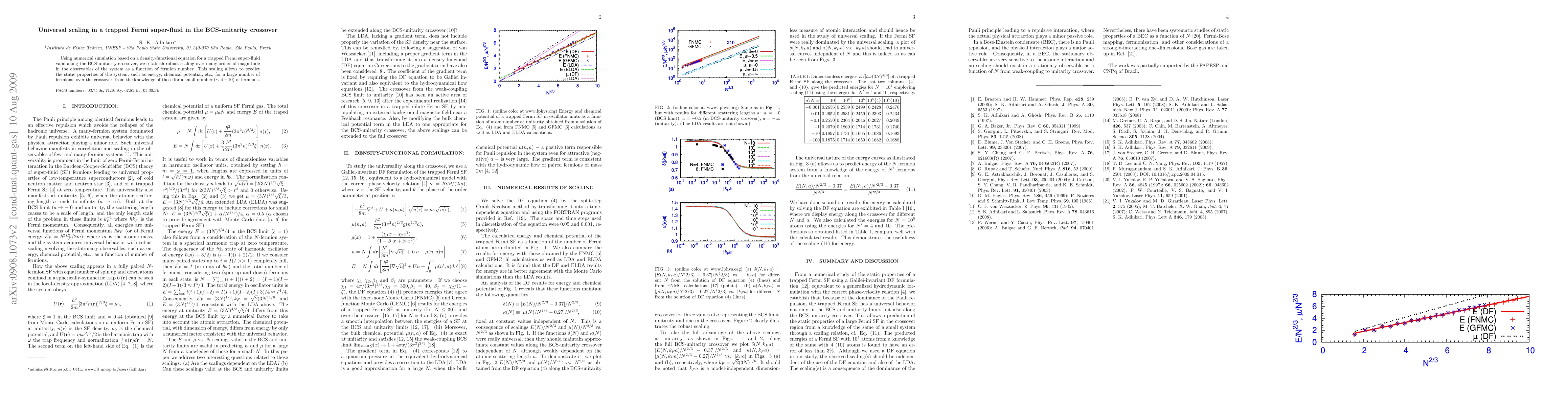 Researchers used numerical simulation to show that observables in a trapped Fermi super-fluid scale with fermion number across the BCS-unitarity crossover, allowing for prediction of static properties over a large number of particles.