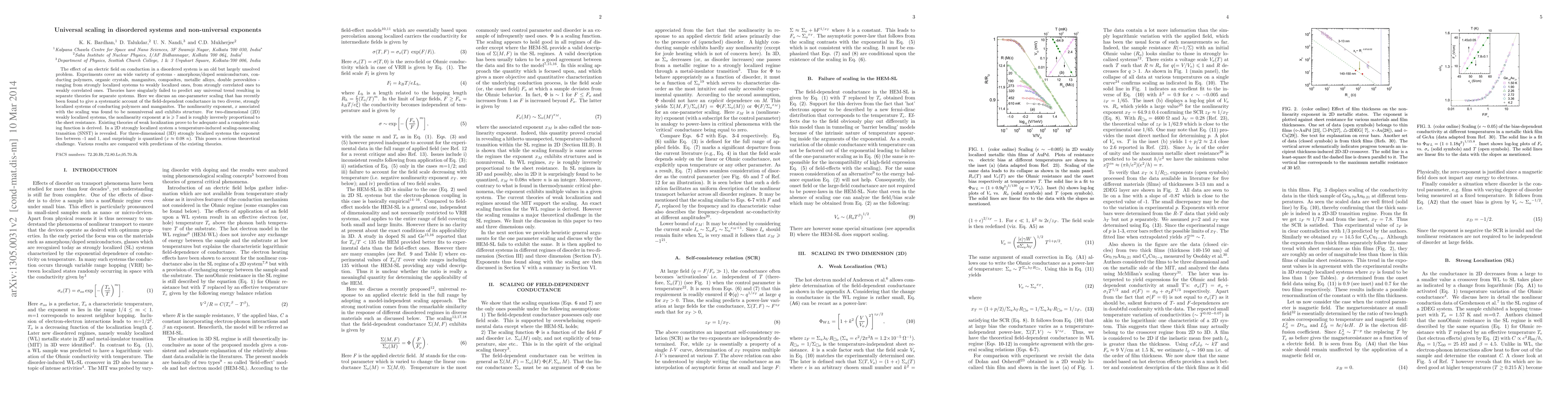 The effect of an electric field on conduction in a disordered system is an old but largely unsolved problem. Experiments cover an wide variety of systems - amorphous/doped semiconductors, conducting polymers, organic crystals, manganites, composites, metallic alloys, double perovskites - ranging from strongly localized systems to weakly localized ones, from strongly correlated ones to weakly correlated ones. Theories have singularly failed to predict any universal trend resulting in separate theories for separate systems. Here we discuss an one-parameter scaling that has recently been found to give a systematic account of the field-dependent conductance in two diverse, strongly localized systems of conducting polymers and manganites. The nonlinearity exponent, \textit{x} associated with the scaling was found to be nonuniversal and exhibits structure. For two-dimensional (2D) weakly localized systems, the nonlinearity exponent \textbf{\textit{x}} is $\geqslant 7$ and is roughly inversely proportional to the sheet resistance. Existing theories of weak localization prove to be adequate and a complete scaling function is derived. In a 2D strongly localized system a temperature-induced scaling-nonscaling transition (SNST) is revealed. For three-dimensional (3D) strongly localized systems the exponent lies between -1 and 1, and surprisingly is quantized (\textit{x} $\approx$ 0.08 \textit{n}). This poses a serious theoretical challenge. Various results are compared with predictions of the existing theories.