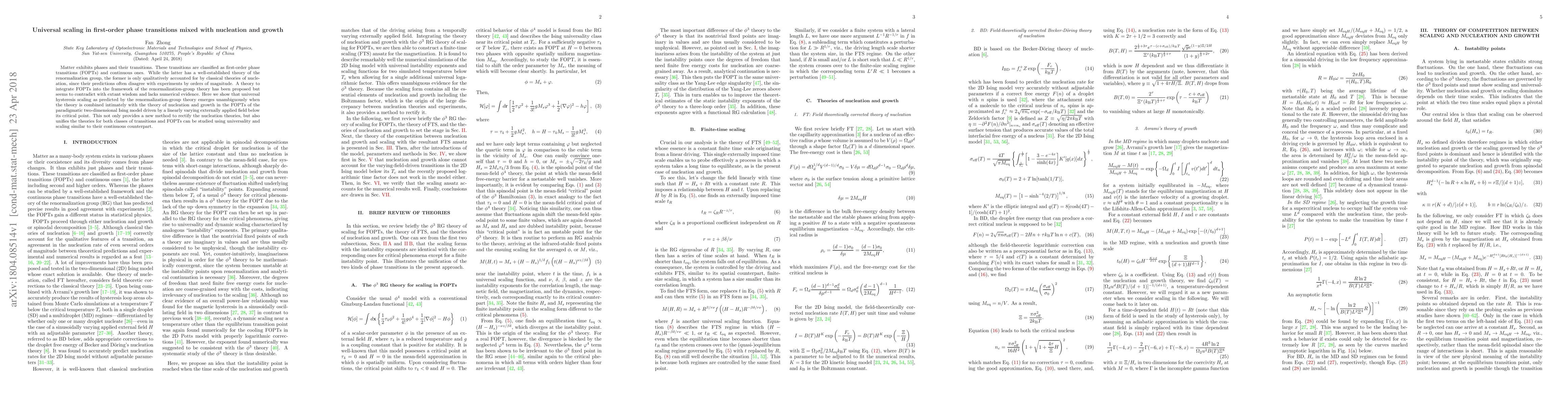 Matter exhibits phases and their transitions. These transitions are classified as first-order phase transitions (FOPTs) and continuous ones. While the latter has a well-established theory of the renormalization group, the former is only qualitatively accounted for by classical theories of nucleation, since their predictions often disagree with experiments by orders of magnitude. A theory to integrate FOPTs into the framework of the renormalization-group theory has been proposed but seems to contradict with extant wisdom and lacks numerical evidence. Here we show that universal hysteresis scaling as predicted by the renormalization-group theory emerges unambiguously when the theory is combined intimately with the theory of nucleation and growth in the FOPTs of the paradigmatic two-dimensional Ising model driven by a linearly varying externally applied field below its critical point. This not only provides a new method to rectify the nucleation theories, but also unifies the theories for both classes of transitions and FOPTs can be studied using universality and scaling similar to their continuous counterpart.