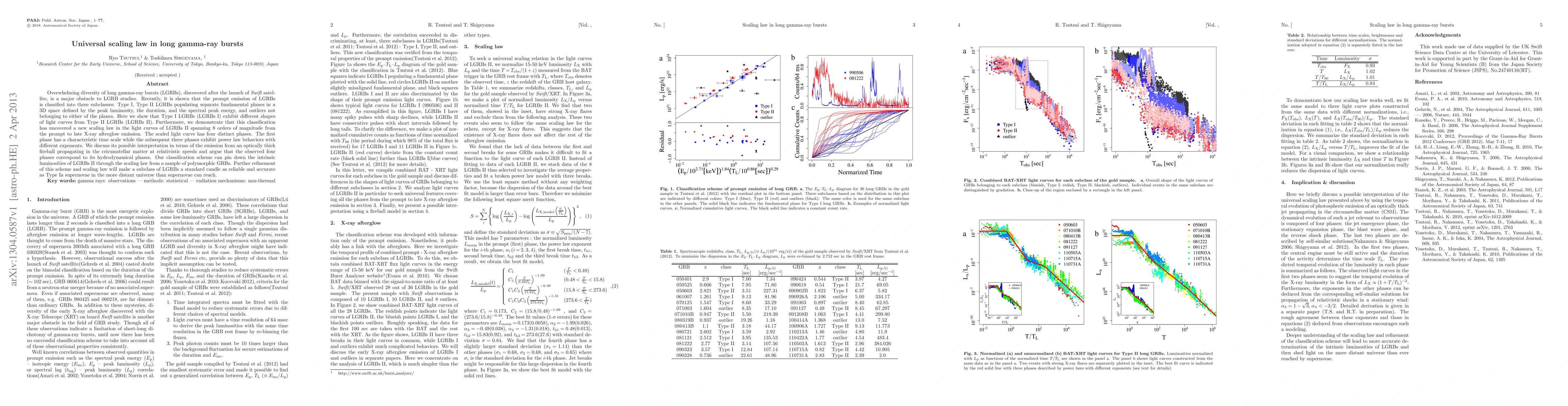 This paper identifies a universal scaling law for Type II long gamma-ray bursts (LGRBs) that reveals four distinct phases in their light curves, suggesting a hydrodynamic model for the optically thick fireball. This classification could potentially standardize LGRBs as reliable distance indicators in the universe.