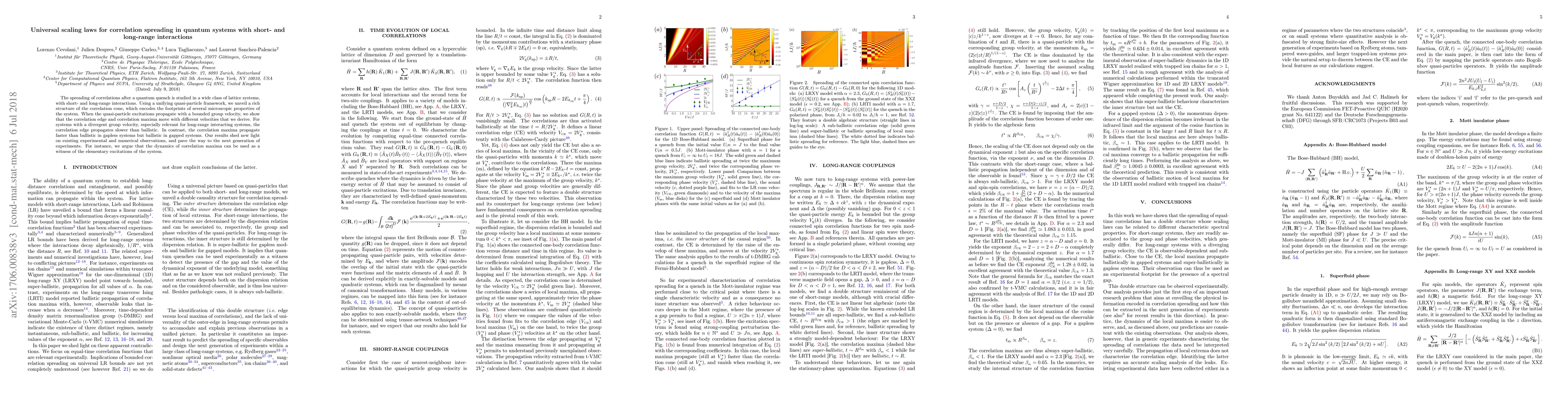 This paper investigates the spreading of information in quantum systems with varying interaction ranges, revealing a dual structure in correlation spreading after a quench. It identifies universal scaling laws tied to microscopic exponents, showing distinct ballistic behaviors depending on the system's maximum group velocity and whether it is gapless or gapped.