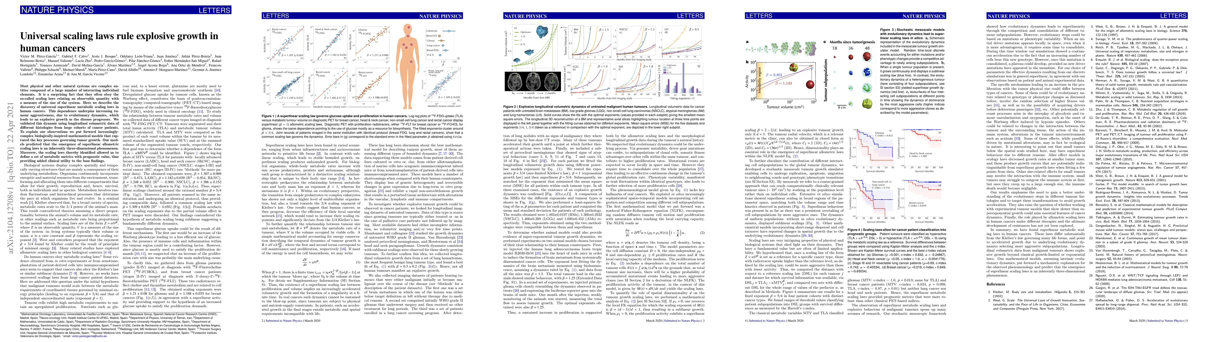 This research identifies universal superlinear metabolic scaling laws governing the explosive growth of human cancers, revealing that these laws underpin tumor aggressiveness and progression. The study validates these findings using longitudinal data and proposes biologically-inspired mathematical models, highlighting the clinical utility of these scaling laws in defining prognostic metabolic metrics.