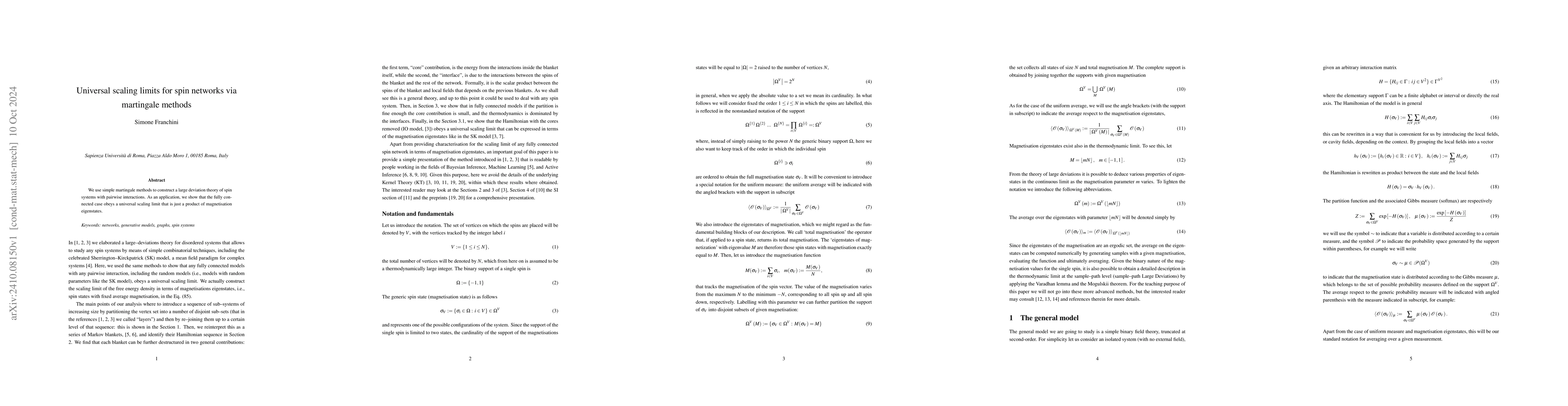 Summary: This paper employs martingale techniques to develop a large deviation theory for spin systems with pairwise interactions, demonstrating that the fully connected spin network converges to a universal scaling limit consisting of magnetization eigenstates.