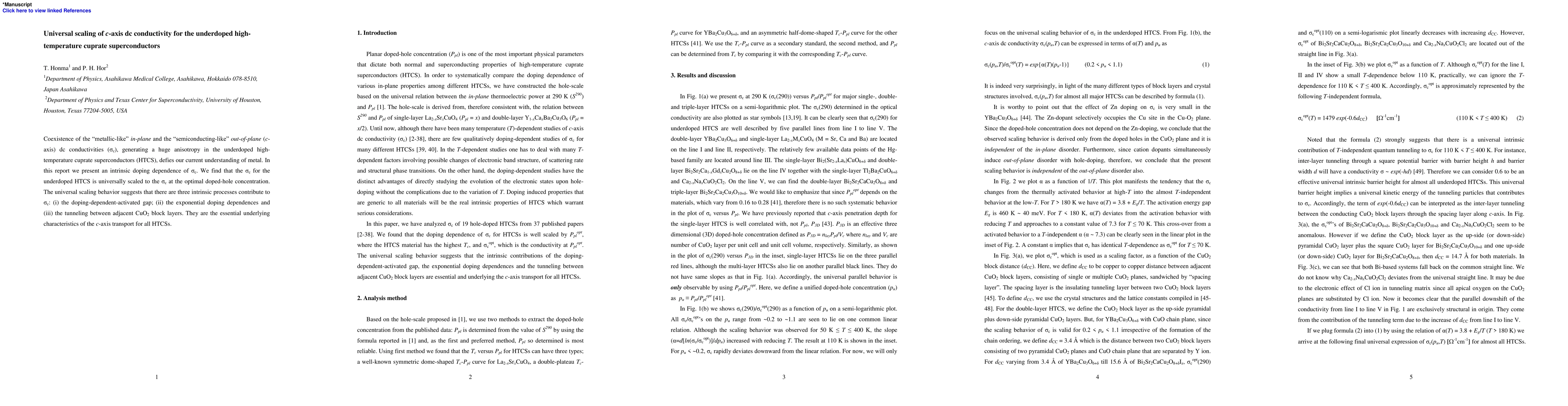 This research reveals a universal scaling behavior of c-axis dc conductivity in underdoped high-temperature cuprate superconductors, suggesting three intrinsic processes contribute to this conductivity: a doping-dependent activated gap, exponential doping dependencies, and tunneling between CuO2 layers. This scaling indicates a fundamental characteristic of c-axis transport across all HTCSs.
