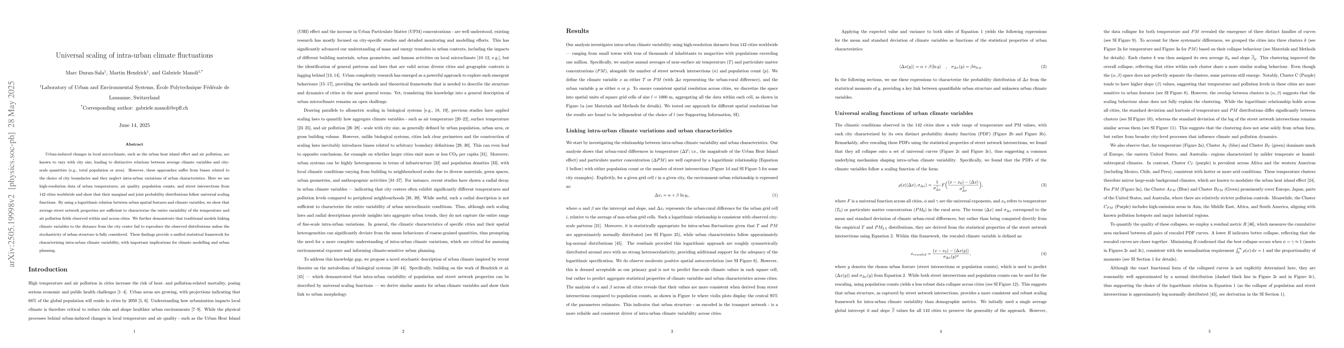 Researchers found that urban climate fluctuations follow universal scaling functions, allowing cities of varying sizes to be characterized by average street network properties. This discovery provides a unified statistical framework for understanding intra-urban climate variability with implications for climate modeling and urban planning.