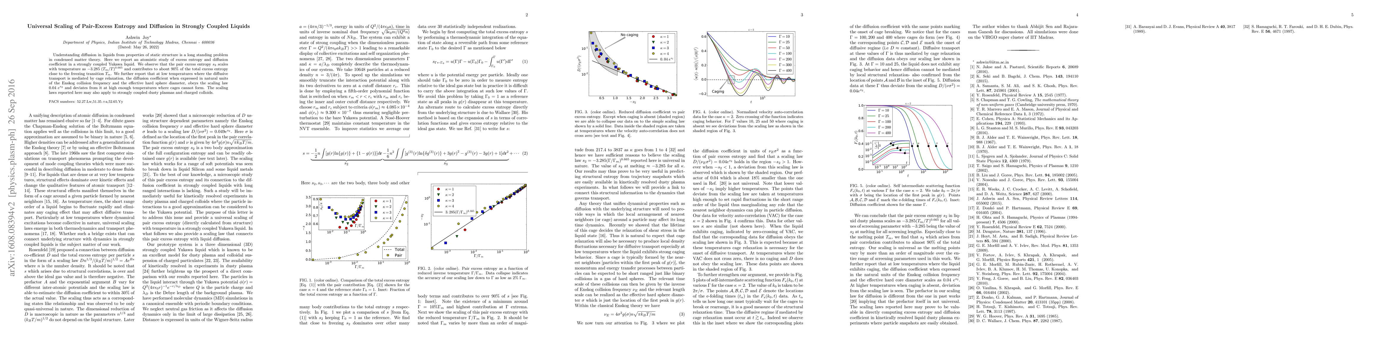 This study reveals that the pair excess entropy in strongly coupled Yukawa liquids scales with temperature and significantly contributes to the total excess entropy near freezing. The diffusion coefficient follows a scaling law dependent on the pair excess entropy, which is applicable to low-temperature diffusive transport and may extend to dusty plasmas and charged colloids.