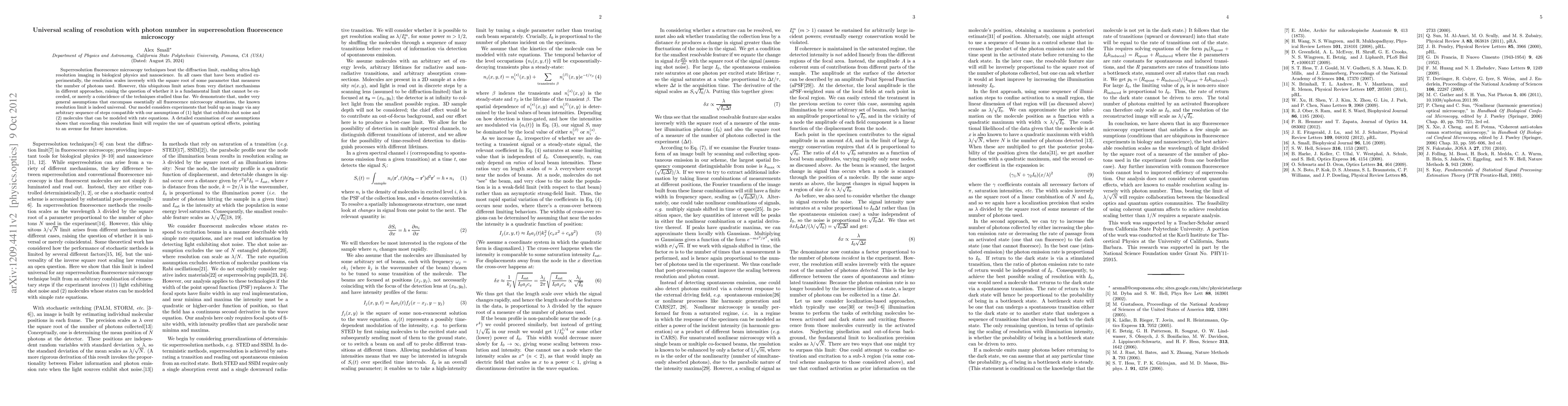 This paper demonstrates that the universal scaling of resolution in superresolution fluorescence microscopy, which inversely scales with the square root of photon number, is a fundamental limit under general assumptions. The authors suggest that surpassing this limit may necessitate quantum optical effects.