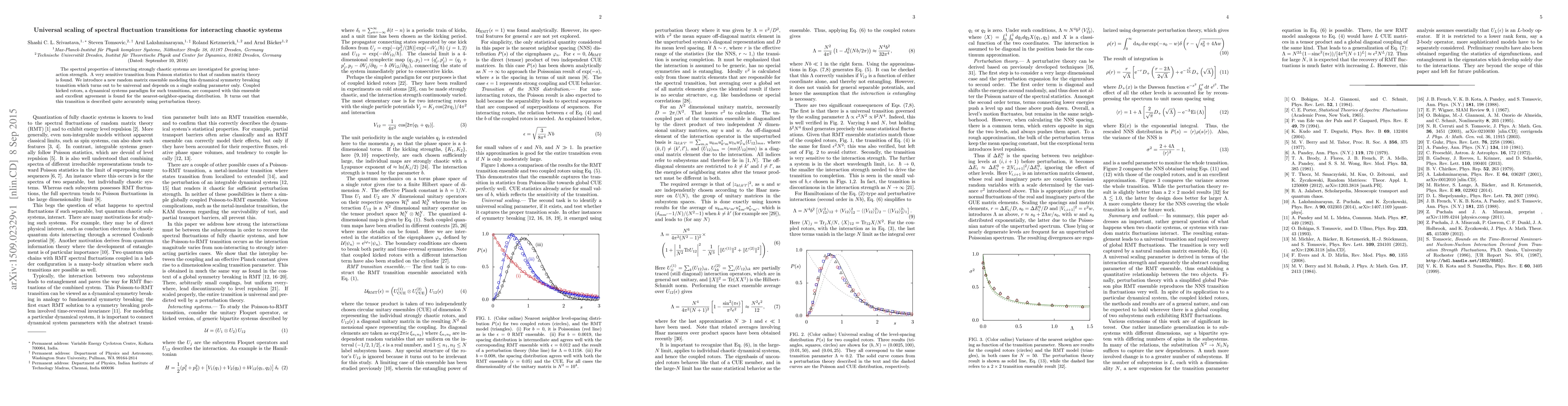 This paper investigates the spectral properties of strongly chaotic systems under increasing interaction strength, revealing a sensitive transition from Poisson statistics to random matrix theory. A new universal random matrix ensemble is introduced to model this transition, which depends solely on a single scaling parameter.
