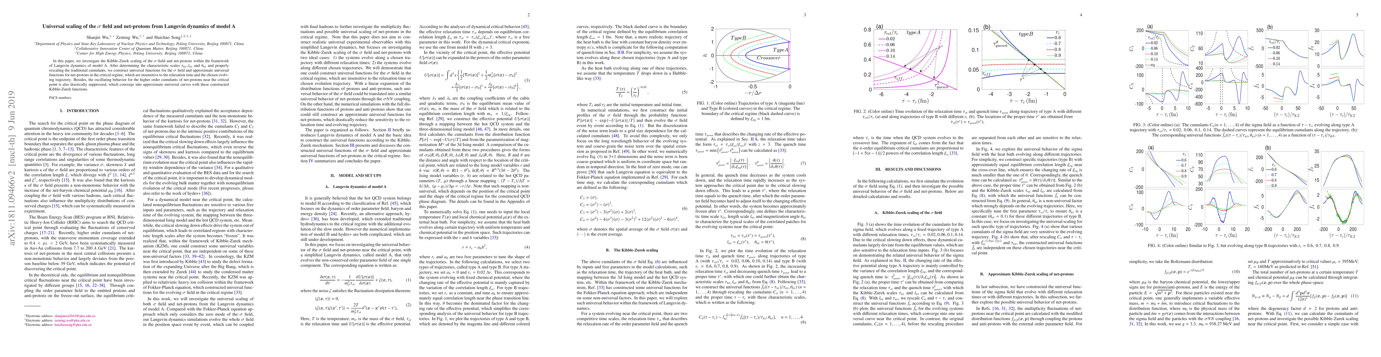 This paper explores the Kibble-Zurek scaling of the sigma field and net-protons using Langevin dynamics in model A, constructing universal functions that remain invariant to relaxation time and trajectory. It also suppresses oscillations in higher-order cumulants for net-protons near the critical point.