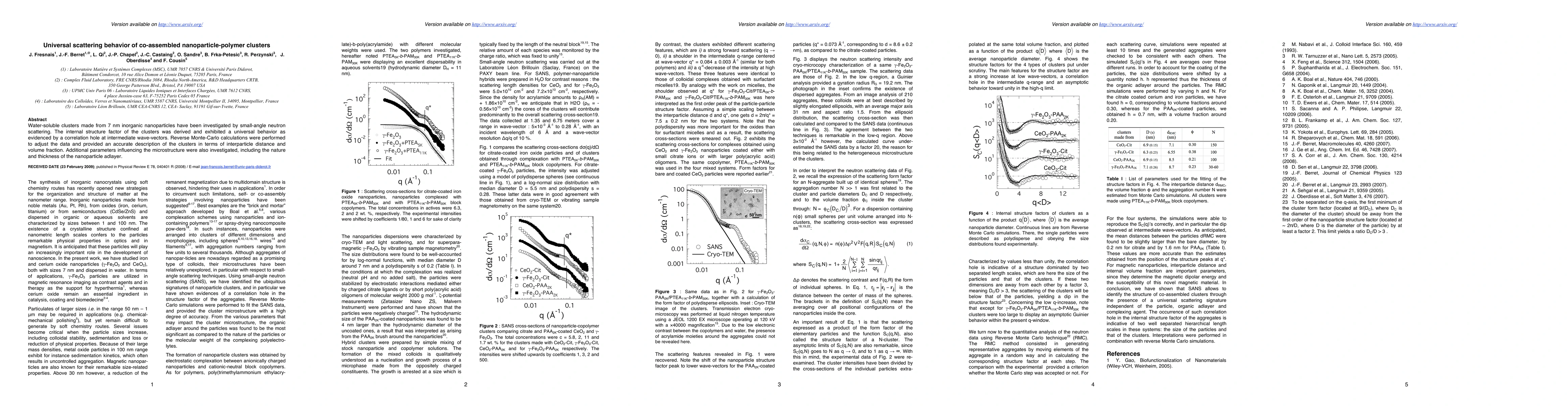 Water-soluble clusters made from 7 nm inorganic nanoparticles have been investigated by small-angle neutron scattering. The internal structure factor of the clusters was derived and exhibited a universal behavior as evidenced by a correlation hole at intermediate wave-vectors. Reverse Monte-Carlo calculations were performed to adjust the data and provided an accurate description of the clusters in terms of interparticle distance and volume fraction. Additional parameters influencing the microstructure were also investigated, including the nature and thickness of the nanoparticle adlayer.