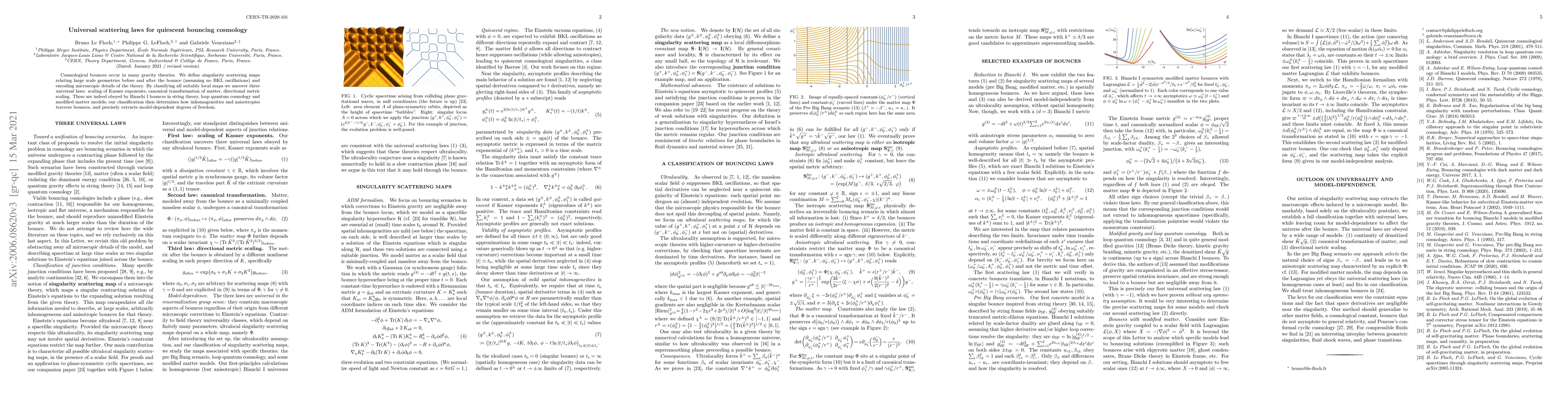 Researchers discover three universal laws governing quiescent bouncing cosmology, describing how geometry scales before and after a cosmic bounce in various gravity theories.