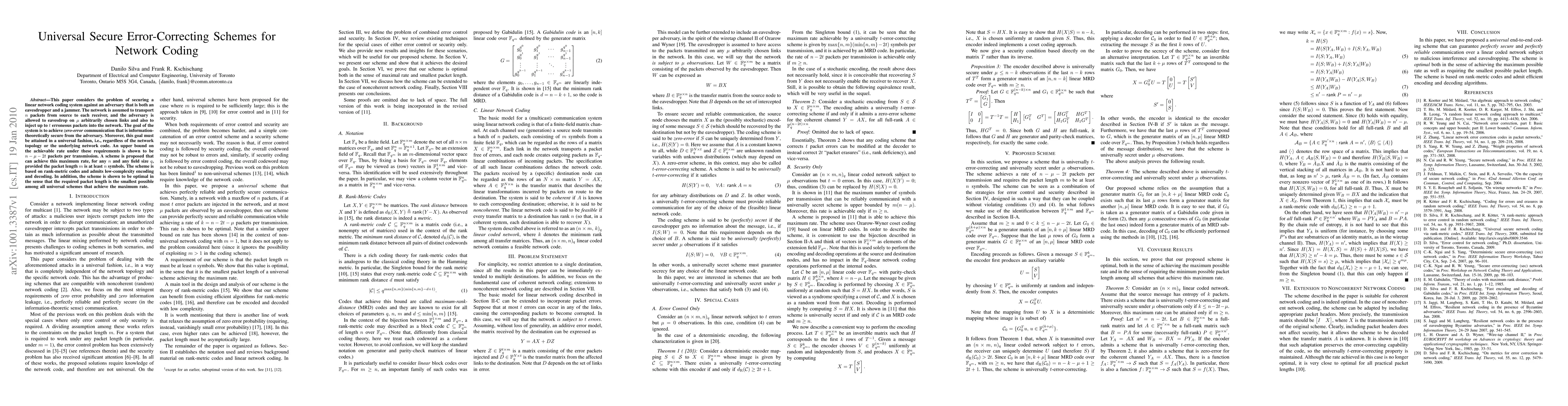 Researchers developed a universal secure error-correcting scheme for network coding that can withstand eavesdropping and jamming attacks, achieving a maximum rate of n-π-2t packets per transmission.