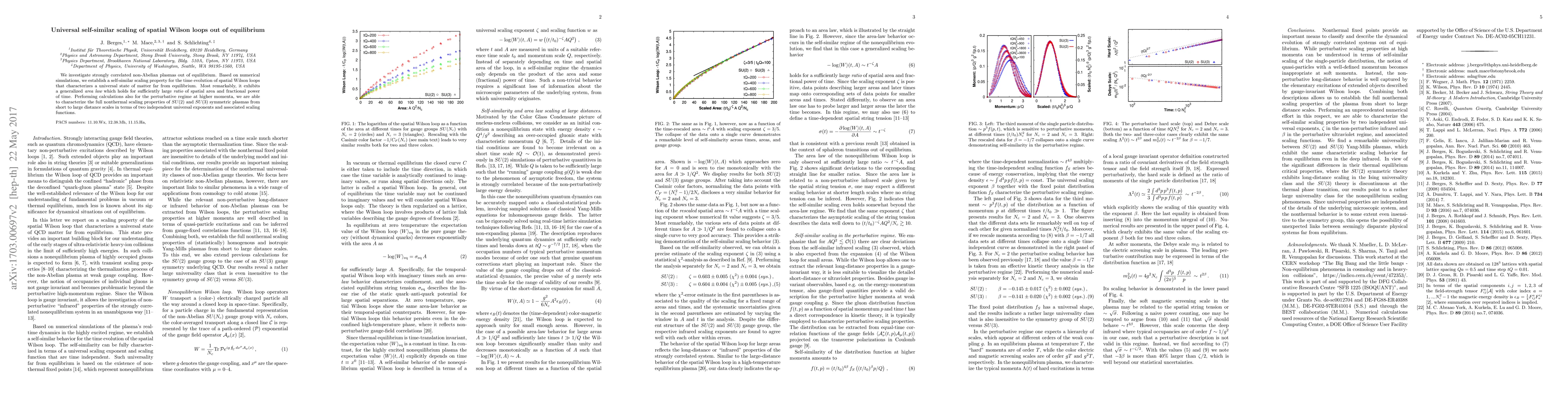 We investigate strongly correlated non-Abelian plasmas out of equilibrium. Based on numerical simulations, we establish a self-similar scaling property for the time evolution of spatial Wilson loops that characterizes a universal state of matter far from equilibrium. Most remarkably, it exhibits a generalized area law which holds for sufficiently large ratio of spatial area and fractional power of time. Performing calculations also for the perturbative regime at higher momenta, we are able to characterize the full nonthermal scaling properties of SU(2) and SU(3) symmetric plasmas from short to large distance scales in terms of two independent universal exponents and associated scaling functions.