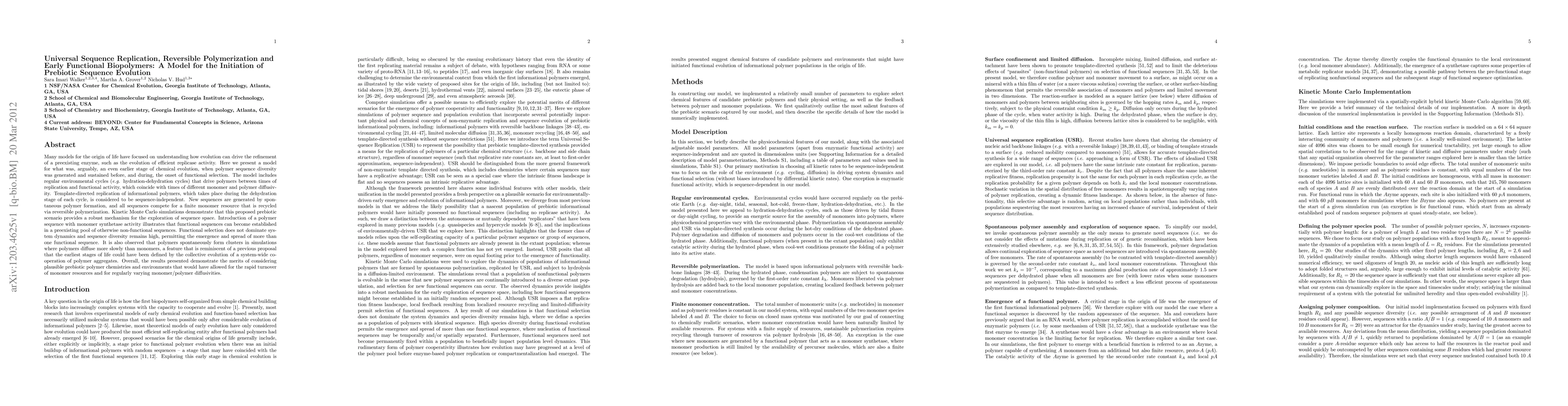 Many models for the origin of life have focused on understanding how evolution can drive the refinement of a preexisting enzyme, such as the evolution of efficient replicase activity. Here we present a model for what was, arguably, an even earlier stage of chemical evolution, when polymer sequence diversity was generated and sustained before, and during, the onset of functional selection. The model includes regular environmental cycles (e.g. hydration-dehydration cycles) that drive polymers between times of replication and functional activity, which coincide with times of different monomer and polymer diffusivity. Kinetic Monte Carlo simulations demonstrate that this proposed prebiotic scenario provides a robust mechanism for the exploration of sequence space. Introduction of a polymer sequence with monomer synthetase activity illustrates that functional sequences can become established in a preexisting pool of otherwise non-functional sequences. Functional selection does not dominate system dynamics and sequence diversity remains high, permitting the emergence and spread of more than one functional sequence. It is also observed that polymers spontaneously form clusters in simulations where polymers diffuse more slowly than monomers, a feature that is reminiscent of a previous proposal that the earliest stages of life could have been defined by the collective evolution of a system-wide cooperation of polymer aggregates. Overall, the results presented demonstrate the merits of considering plausible prebiotic polymer chemistries and environments that would have allowed for the rapid turnover of monomer resources and for regularly varying monomer/polymer diffusivities.