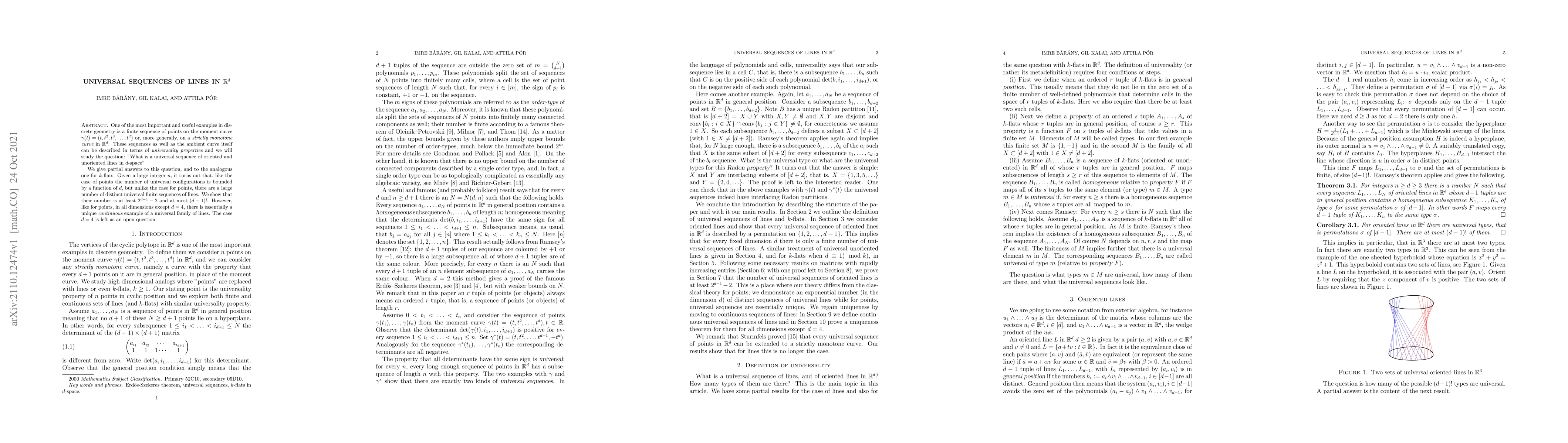 The paper investigates universal sequences of lines in $\mathbb R^d$, extending the study of points on moment curves to more general strictly monotone curves. It provides partial answers to the question of what constitutes a universal sequence of oriented and unoriented lines, exploring configurations for large integers $n$.