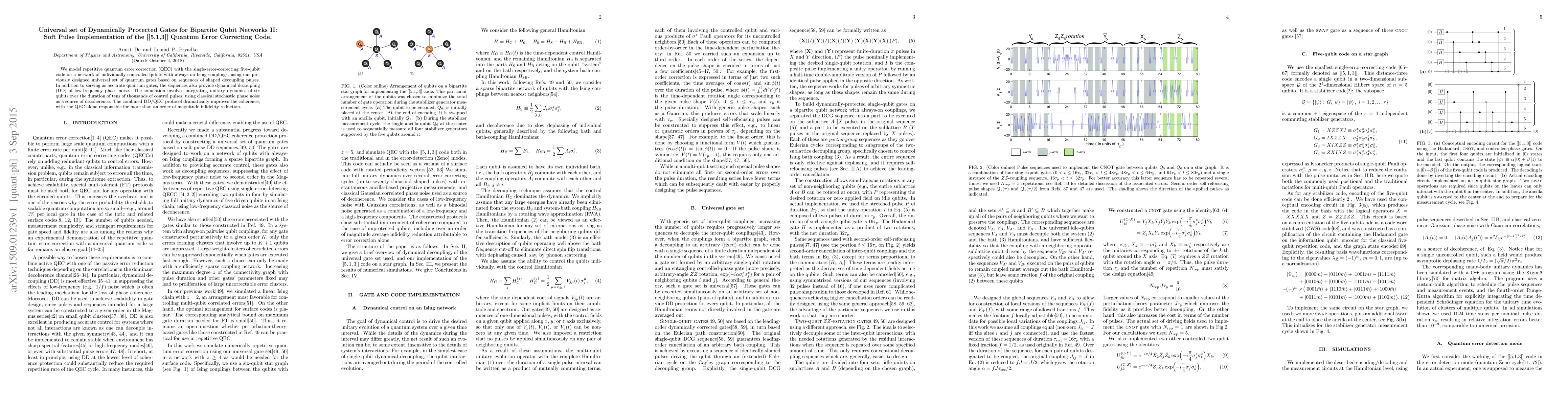 This paper proposes a universal set of dynamically protected quantum gates for bipartite qubit networks, implementing the [[5,1,3]] quantum error-correcting code using soft pulses. The approach combines quantum error correction with dynamical decoupling to significantly enhance qubit coherence, achieving over an order of magnitude reduction in infidelity.