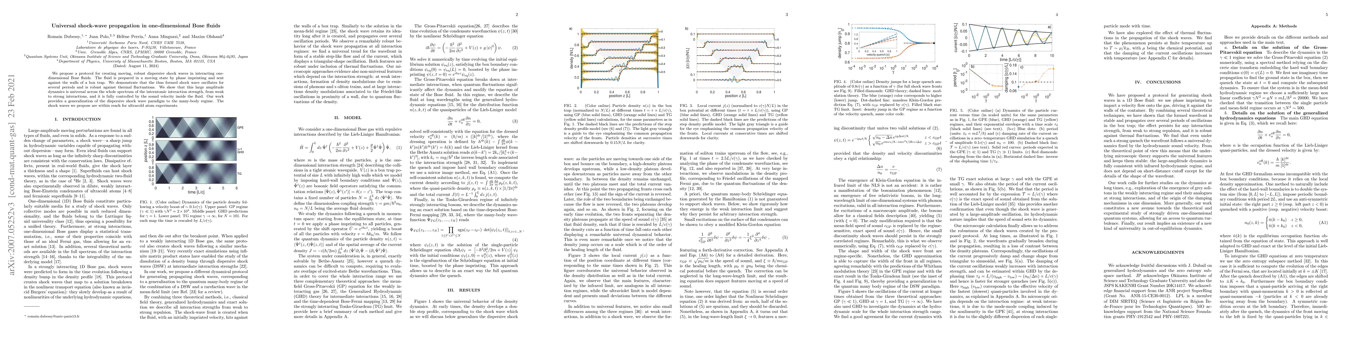 We propose a protocol for creating moving, robust dispersive shock waves in interacting one-dimensional Bose fluids. The fluid is prepared in a moving state by phase imprinting and sent against the walls of a box trap. We demonstrate that the thus formed shock wave oscillates for several periods and is robust against thermal fluctuations. We show that this large amplitude dynamics is universal across the whole spectrum of the interatomic interaction strength, from weak to strong interactions, and it is fully controlled by the sound velocity inside the fluid. Our work provides a generalization of the dispersive-shock-wave paradigm to the many-body regime. The shock waves we propose are within reach for ultracold atom experiments.