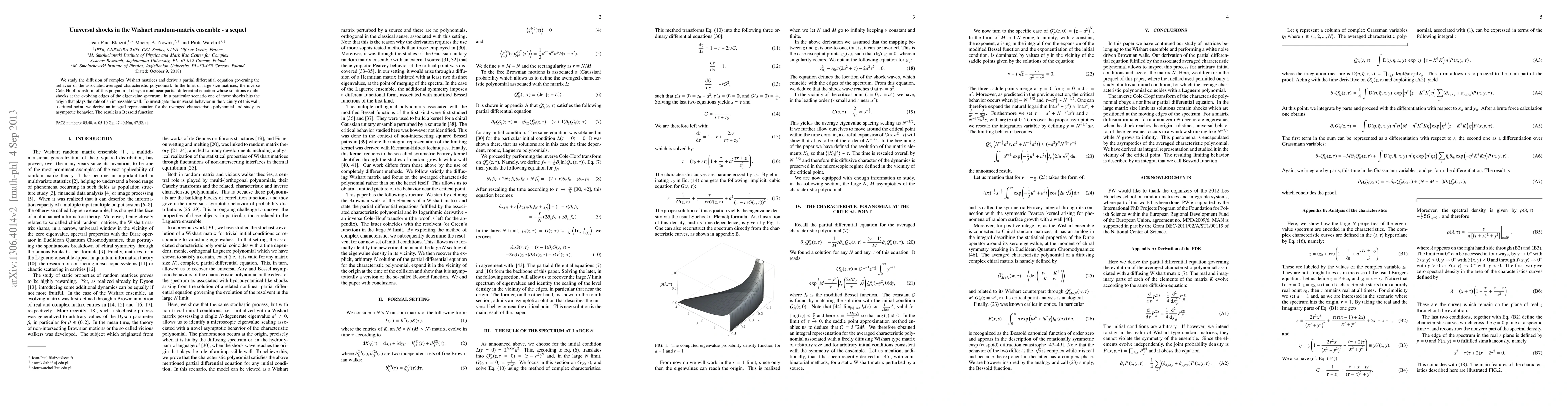 We study the diffusion of complex Wishart matrices and derive a partial differential equation governing the behavior of the associated averaged characteristic polynomial. In the limit of large size matrices, the inverse Cole-Hopf transform of this polynomial obeys a nonlinear partial differential equation whose solutions exhibit shocks at the evolving edges of the eigenvalue spectrum. In a particular scenario one of those shocks hits the origin that plays the role of an impassable wall. To investigate the universal behavior in the vicinity of this wall, a critical point, we derive an integral representation for the averaged characteristic polynomial and study its asymptotic behavior. The result is a Bessoid function.