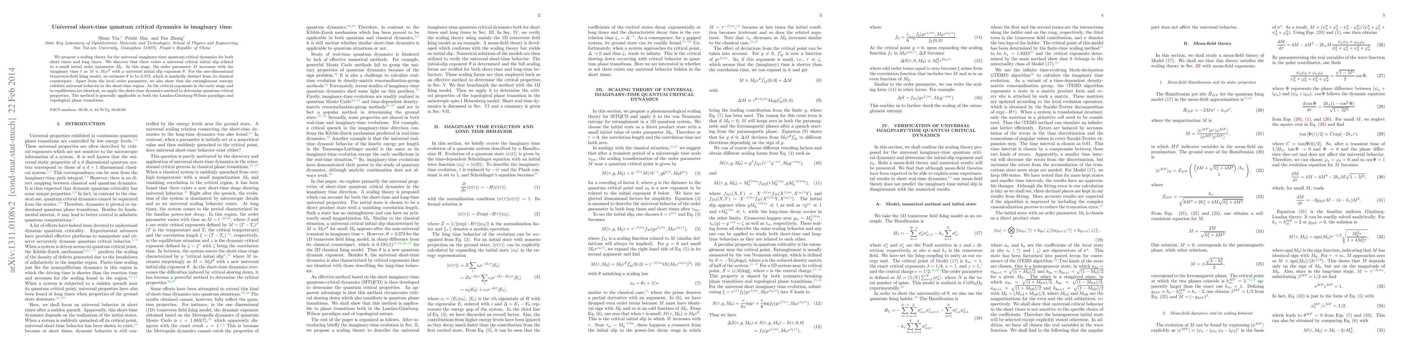 This paper proposes a scaling theory for universal quantum critical dynamics in imaginary time, revealing a critical initial slip with a distinct exponent $\theta$ for short times. The study applies this method to determine quantum critical properties, showing its applicability across different quantum phase transitions.