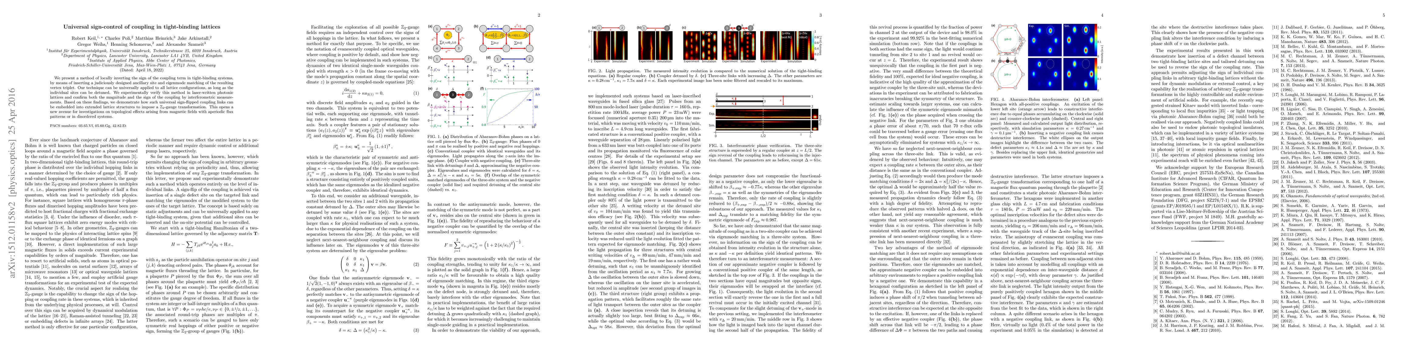 We present a method of locally inverting the sign of the coupling term in tight-binding systems, by means of inserting a judiciously designed ancillary site and eigenmode matching of the resulting vertex triplet. Our technique can be universally applied to all lattice configurations, as long as the individual sites can be detuned. We experimentally verify this method in laser-written photonic lattices and confirm both the magnitude and the sign of the coupling by interferometric measurements. Based on these findings, we demonstrate how such universal sign-flipped coupling links can be embedded into extended lattice structures to impose a $\mathbb{Z}_2$-gauge transformation. This opens a new avenue for investigations on topological effects arising from magnetic fields with aperiodic flux patterns or in disordered systems.