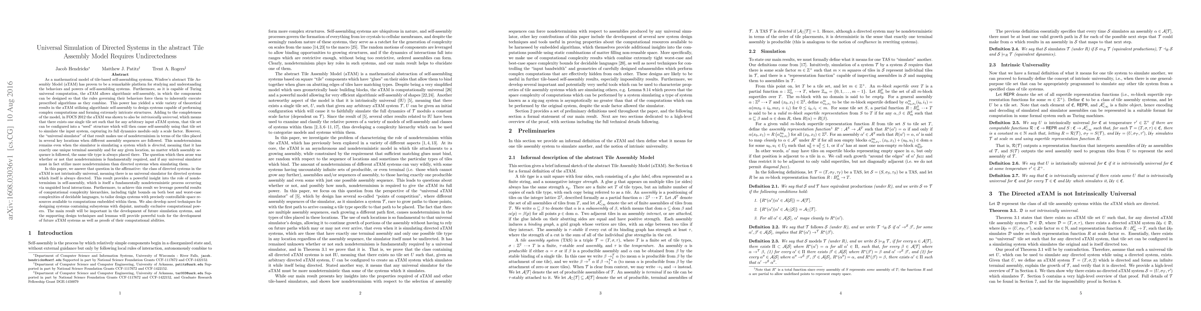 The abstract Tile Assembly Model (aTAM) is not intrinsically universal for directed systems, requiring nondeterminism for universal simulation. This insight highlights the fundamental role of nondeterminism in self-assembly processes.