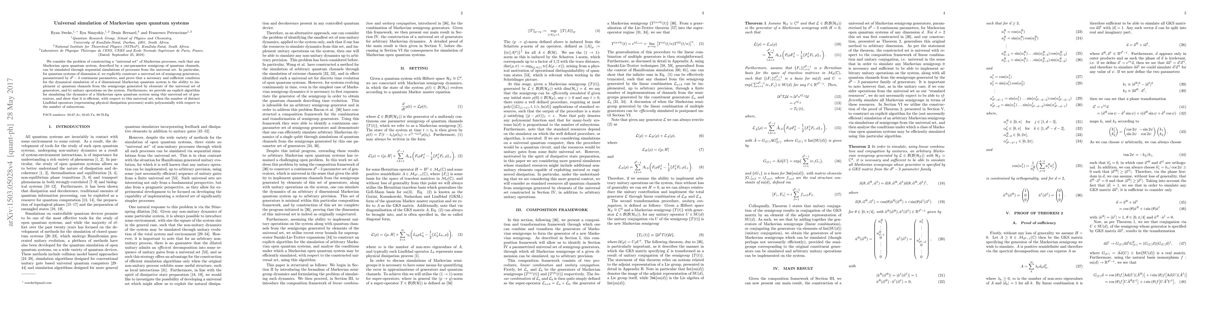 This paper constructs a universal set of Markovian processes for simulating any open quantum system through sequential simulations. It provides a set of semigroup generators for $d$-dimensional systems, requiring the implementation of specific quantum channels and unitary operations for efficient simulation.