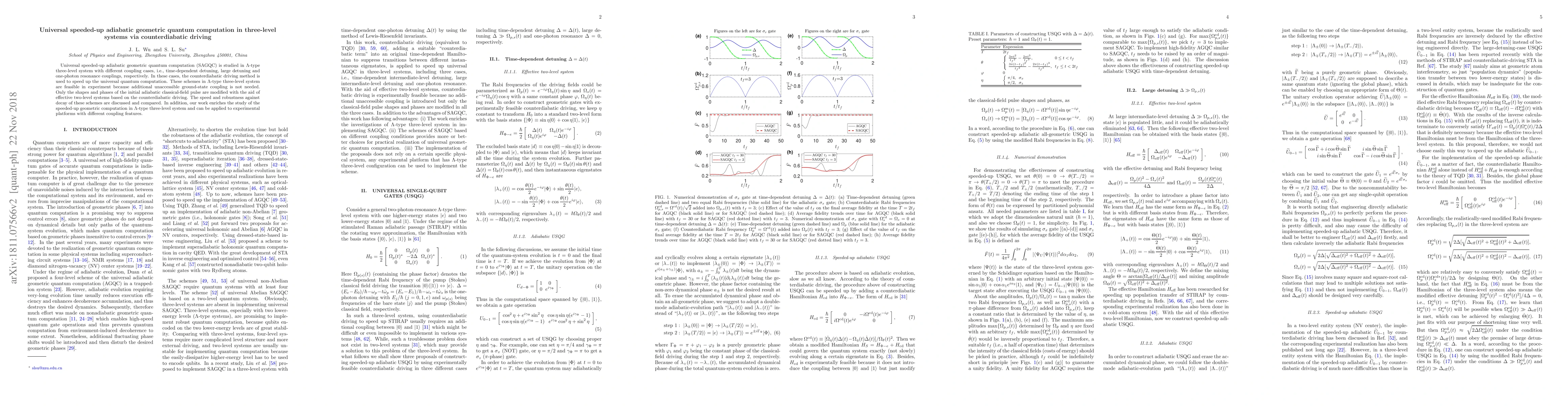 This paper explores universal speeded-up adiabatic geometric quantum computation in $\Lambda$-type three-level systems using counterdiabatic driving, demonstrating feasibility in various coupling scenarios without requiring additional ground-state-coupling. The study compares the speed and robustness of these schemes and highlights their potential applicability across different experimental platforms.