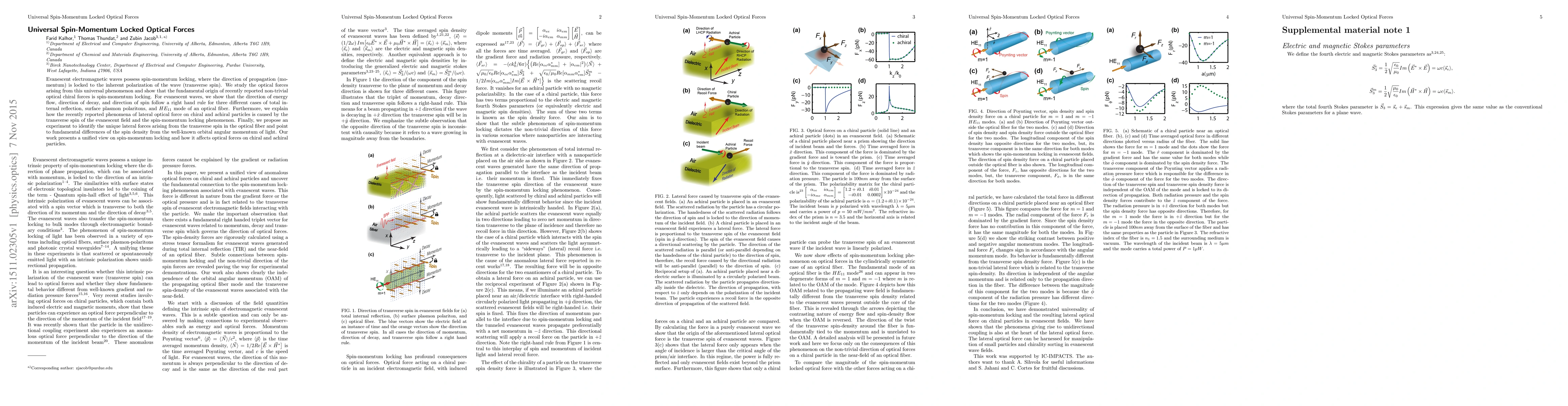 This paper explores the spin-momentum locking in evanescent electromagnetic waves and its implications for optical forces, demonstrating that this phenomenon underlies recent reports of non-trivial optical chiral forces. It proposes an experiment to identify unique lateral forces due to transverse spin in optical fibers, highlighting fundamental differences between spin density and orbital angular momentum.
