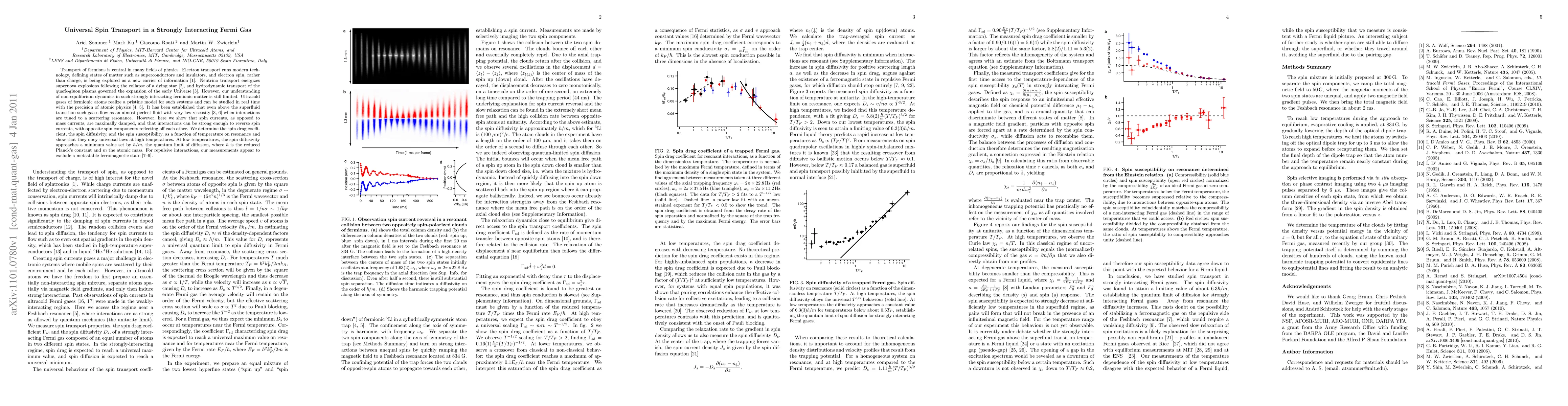 Transport of fermions is central in many fields of physics. Electron transport runs modern technology, defining states of matter such as superconductors and insulators, and electron spin, rather than charge, is being explored as a new carrier of information [1]. Neutrino transport energizes supernova explosions following the collapse of a dying star [2], and hydrodynamic transport of the quark-gluon plasma governed the expansion of the early Universe [3]. However, our understanding of non-equilibrium dynamics in such strongly interacting fermionic matter is still limited. Ultracold gases of fermionic atoms realize a pristine model for such systems and can be studied in real time with the precision of atomic physics [4, 5]. It has been established that even above the superfluid transition such gases flow as an almost perfect fluid with very low viscosity [3, 6] when interactions are tuned to a scattering resonance. However, here we show that spin currents, as opposed to mass currents, are maximally damped, and that interactions can be strong enough to reverse spin currents, with opposite spin components reflecting off each other. We determine the spin drag coeffcient, the spin diffusivity, and the spin susceptibility, as a function of temperature on resonance and show that they obey universal laws at high temperatures. At low temperatures, the spin diffusivity approaches a minimum value set by the ratio of the reduced Planck's constant to the atomic mass. For repulsive interactions, our measurements appear to exclude a metastable ferromagnetic state [7-9].